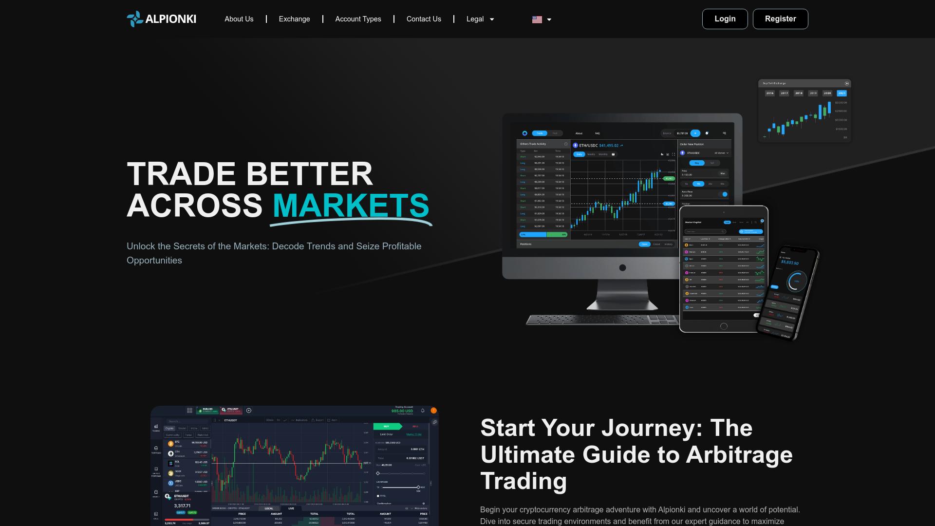 Die Webseite Alpionki bietet Informationen und Dienstleistungen im Bereich Trading und Kryptowährung. Auf der Plattform finden Benutzer verschiedene Angebote, die darauf abzielen, das Trading-Erlebnis zu verbessern. Die Webseite präsentiert sich mit einem modernen und ansprechenden Design und zielt darauf ab, Nutzern den Zugang zu Marktdaten und Handelsanalysen zu erleichtern. Ein zentrales Element der Webseite ist die Möglichkeit, im Kryptowährungsmarkt zu handeln. Die Seite enthält Funktionen, die Nutzern dabei helfen, Handelstrends zu identifizieren und potenzielle Handelsmöglichkeiten zu nutzen. Hierzu werden verschiedene Grafiken und Diagramme angezeigt, die aktuelle Marktentwicklungen visuell darstellen. Nutzer können sich über die Leistungsstatistiken von Kryptowährungen und deren Preisbewegungen informieren. Des Weiteren bietet Alpionki einen Leitfaden für Arbitrage-Trading an. Dieser Leitfaden soll Einsteigern helfen, die Grundlagen der Arbitrage zu verstehen und Strategien zu entwickeln, um von Preisunterschieden zwischen verschiedenen Märkten oder Plattformen zu profitieren. Auf der Webseite wird darauf hingewiesen, dass Nutzer einen sicheren Handelsraum betreten und von der Expertise der Plattform profitieren können. Die Webseite enthält auch Informationen zu verschiedenen Kontotypen, die Benutzer auswählen können, um an ihren Handelsaktivitäten teilzunehmen. Diese Kontotypen könnten unterschiedliche Funktionen und Vorteile bieten, die auf die Bedürfnisse verschiedener Trader abgestimmt sind. Zusätzlich gibt es einen Bereich für rechtliche Informationen, der wichtige Hinweise zu den Nutzungsbedingungen der Webseite enthält. Eine Kontaktmöglichkeit für Nutzer ist ebenfalls eingerichtet, um Fragen oder Anliegen zu klären. Die registrierten Benutzer haben Zugang zu spezifischen Funktionen, die ihr Trading-Erlebnis weiter verbessern sollen. Insgesamt umfasst die Webseite eine Vielzahl von Informationen und Dienstleistungen, die sich auf den Handel mit Kryptowährungen konzentrieren, einschließlich Anleitungen und Hilfsmittel zur Unterstützung von Tradern, die ihre Fähigkeiten im Markt weiterentwickeln möchten.