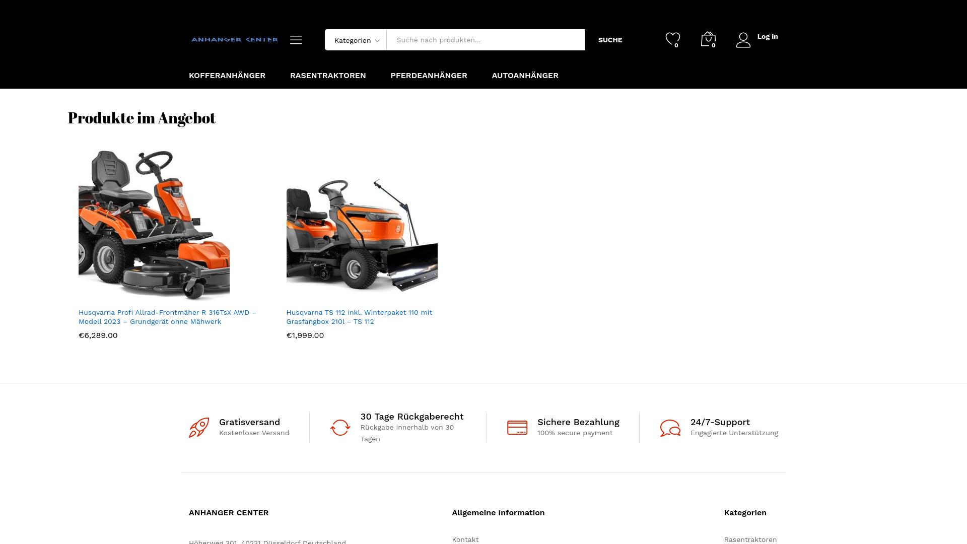Die Webseite „Anhänger Center“ bietet eine Auswahl von Produkten im Bereich der Garten- und Landschaftspflege an. Im Fokus stehen insbesondere Rasenmäher und Rasentraktoren der Marke Husqvarna. Zwei spezifische Modelle werden hervorgehoben: 1. **Husqvarna Profi Allrad-Frontmäher R 316Tsx AWD** (Modell 2023): Dieses Gerät wird als Grundgerät ohne Mähwerk angeboten und hat einen Preis von 6.289,00 Euro. Es wird darauf hingewiesen, dass es sich um ein professionelles Modell handelt, das möglicherweise für intensiveren Einsatz im Landschaftsbau oder zur Pflege größerer Flächen geeignet ist. 2. **Husqvarna TS 112**: Dieses Modell ist im Paket mit einem Winterpaket 110 und einer Grasfangbox 210L erhältlich. Der Preis für dieses Angebot liegt bei 1.999,00 Euro. Das Produkt scheint sowohl für den Sommer als auch für die Wintermonate konzipiert zu sein, was auf eine multifunktionale Nutzung hinweist. Zusätzlich zur Produktübersicht werden einige Dienstleistungen und Merkmale der Webseite erwähnt. Unter anderem wird kostenloser Versand sowie ein Rückgaberecht innerhalb von 30 Tagen angeboten. Eine sichere Zahlungsmethode wird ebenfalls beworben. Des Weiteren steht ein 24/7-Support zur Verfügung, was auf eine ständige Kundenbetreuung hindeutet. Die Webseite ist übersichtlich gestaltet und bietet verschiedene Kategorien für die Produkte an, darunter Kofferanhänger, Rasentraktoren, Pferdeanhänger und Autoanhänger. Diese Kategorisierung könnte Nutzern helfen, gezielt nach spezifischen Produkten zu suchen. Der allgemeine Standort der Firma ist in Düsseldorf, Deutschland, und Kontaktinformationen sind ebenfalls verfügbar. Die Präsentation der Produkte und Dienstleistungen erfolgt in einem strukturierten Format, das es den Nutzern erleichtert, die erforderlichen Informationen zu finden. Zusammenfassend stellt die Webseite „Anhänger Center“ eine Plattform dar, die sich auf verschiedene Modelle von Rasenmähern und Rasentraktoren spezialisiert hat, sowie ergänzende Dienstleistungen für die Bestellung und den Kundenservice anbietet.