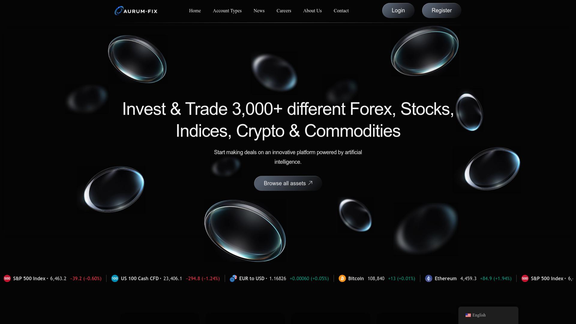 Die Webseite „Aurum-Fix“ bietet Nutzern die Möglichkeit, in eine Vielzahl von Finanzinstrumenten zu investieren und zu handeln. Dies umfasst über 3.000 unterschiedliche Kategorien wie Forex, Aktien, Indizes, Kryptowährungen und Rohstoffe. Die Plattform wirbt damit, dass sie eine innovative Handelsoberfläche nutzt, die auf künstlicher Intelligenz basiert, um den Nutzern beim Handeln zu unterstützen. Auf der Startseite sind verschiedene Marktindikatoren aufgeführt, darunter der S&P 500 Index, US-Cash CFDs und aktuelle Kurse für bekannte Kryptowährungen wie Bitcoin und Ethereum. Es werden prozentuelle Änderungen der jeweiligen Werte angezeigt, die den Nutzern helfen sollen, aktuelle Trends und Entwicklungen zu verfolgen. Außerdem bietet die Seite Links zu Optionen für die Registrierung und den Login, sodass interessierte Nutzer Konten erstellen oder auf bestehende Konten zugreifen können. Zusätzlich gibt es Informationen über unterschiedliche Kontotypen, die je nach den Bedürfnissen der Nutzer variieren könnten. Im Zuge der Nutzung der Plattform könnte eine detaillierte Übersicht der verfügbaren Vermögenswerte bereitgestellt werden, wobei Nutzer möglicherweise auch die Möglichkeit haben, individuelle Handelsstrategien zu entwickeln und zu implementieren. Die Webseite führt einen Bereich „About Us“ und „Careers“, was darauf hindeutet, dass sie Informationen über das Unternehmen sowie mögliche Stellenangebote bereitstellt. Nutzer können auch Kontaktinformationen finden, um Unterstützung durch den Kundenservice zu erhalten. Es wird betont, dass die Plattform darauf abzielt, den Nutzern eine umfassende und benutzerfreundliche Handelsumgebung zu bieten, wobei der Fokus auf einer breiten Palette von Handelsmöglichkeiten liegt. In den angebotenen Dienstleistungen könnte auch eine umfassende Marktanalyse oder -beratung enthalten sein, die den Nutzern bei ihren Handelsentscheidungen helfen soll. Insgesamt bietet die Webseite eine ausgedehnte Auswahl an Handelsfunktionen und -möglichkeiten, ohne spezifische Details zu den Bedingungen oder den potenziellen Risiken des Handels aufzuzeigen.