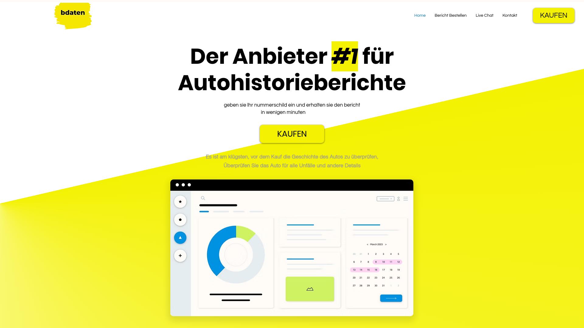 Die Webseite bietet Dienstleistungen zur Bereitstellung von Autohistorieberichten an. Nutzer sollen durch Eingabe des Nummernschilds eines Fahrzeugs Zugang zu detaillierten Informationen über dessen Geschichte erhalten. Die Plattform hebt hervor, dass es wichtig ist, die Geschichte eines Autos zu überprüfen, bevor es gekauft wird, um potenzielle Probleme wie Unfälle oder andere relevante Ereignisse zu erkennen. Auf der Startseite wird ein klar strukturiertes Layout präsentiert, das auf eine schnelle und einfache Nutzung ausgelegt ist. Nutzer haben die Möglichkeit, einen Bericht zu bestellen, der in wenigen Minuten bereitgestellt werden soll. Zudem wird ein „Live Chat“ angeboten, um möglicherweise auftretende Fragen sofort zu klären. Das Konzept der Webseite zielt darauf ab, Käufern zu helfen, informierte Entscheidungen zu treffen, indem auf wichtige Informationen verwiesen wird, die für die Beurteilung des Fahrzeugzustands entscheidend sein können. Die Webseiteninhalte sind einfach gehalten und konzentrieren sich auf das Angebot der Autohistorieberichte, ohne zusätzliche Dienstleistungen oder Produkte zu integrieren. Insgesamt scheint die Webseite Nutzer gezielt ansprechen zu wollen, die sich vor dem Autokauf über die Vorgeschichte eines Fahrzeugs informieren möchten. Der Prozess zur Bestellung eines Berichtes sowie die Informationen, die bereitgestellt werden, sind im Wesentlichen darauf ausgerichtet, den Käufern eine umfassendere Perspektive auf den Zustand und die Geschichte des jeweiligen Fahrzeugs zu ermöglichen. Die Gestaltung der Seite, einschließlich der Farbwahl und der grafischen Elemente, vermittelt Modernität und Zugänglichkeit. Gleichzeitig werden Informationen über die spezifischen Angebote der Webseite vermittelt, wobei die Betonung auf der schnellen Bereitstellung von Autohistorieberichten liegt.