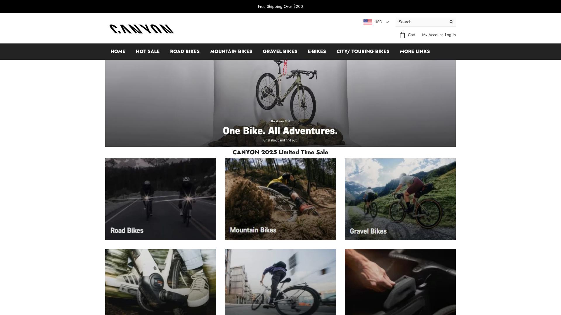 Die Webseite bietet eine Auswahl an Fahrrädern, die in verschiedene Kategorien unterteilt sind. Zu den Hauptkategorien gehören Straßenräder, Mountainbikes, Gravelbikes sowie E-Bikes und Stadträder. Jede Kategorie scheint spezifische Modelle anzubieten, die sich an unterschiedliche Bedürfnisse und Einsatzzwecke richten. Auf der Startseite wird ein prominent beworbenes Modell vorgestellt, welches als vielseitig beschrieben wird und möglicherweise für verschiedene Abenteuer geeignet ist. Es werden Bilder verwendet, die verschiedene Fahrräder im Einsatz zeigen, um die Vielfalt der angebotenen Produkte zu veranschaulichen. Die Bilder zeigen Szenen aus der Natur und urbanen Umgebungen, was auf die Eignung der Fahrräder für unterschiedliche Aktivitäten hinweist. Zusätzlich gibt es einen Bereich für Sonderangebote, der möglicherweise zeitlich begrenzte Rabatte oder Angebote beinhaltet. Diese Sektion könnte für Nutzer von Interesse sein, die nach Kosteneinsparungen beim Kauf von Fahrrädern suchen. Die Benutzeroberfläche der Webseite wirkt modern und benutzerfreundlich, mit klaren Navigationspunkten, die es den Nutzern ermöglichen, schnell zwischen den verschiedenen Fahrradkategorien und weiteren Links zu wechseln. Auch die Suchfunktion ist prominent platziert, was eine einfache Auffindbarkeit von Produkten erleichtert. Es wird zudem erwähnt, dass bei Bestellungen über einen bestimmten Betrag der Versand kostenfrei ist, was für potenzielle Käufer von Interesse sein könnte. Diese Information könnte dazu beitragen, die Gesamtkosten des Kaufs zu berücksichtigen. Die Webseite enthält ferner Verweise auf zusätzliche Seiten mit weiteren Informationen oder eventuell auf Blogs und Links zu sozialen Medien, die den Nutzern zusätzliche Inhalte bieten könnten, um sich über die Produkte oder die Marke zu informieren. Insgesamt bietet die Webseite eine umfassende Übersicht über Fahrradmodelle und -angebote, um Nutzer bei der Auswahl eines Fahrrads zu unterstützen.