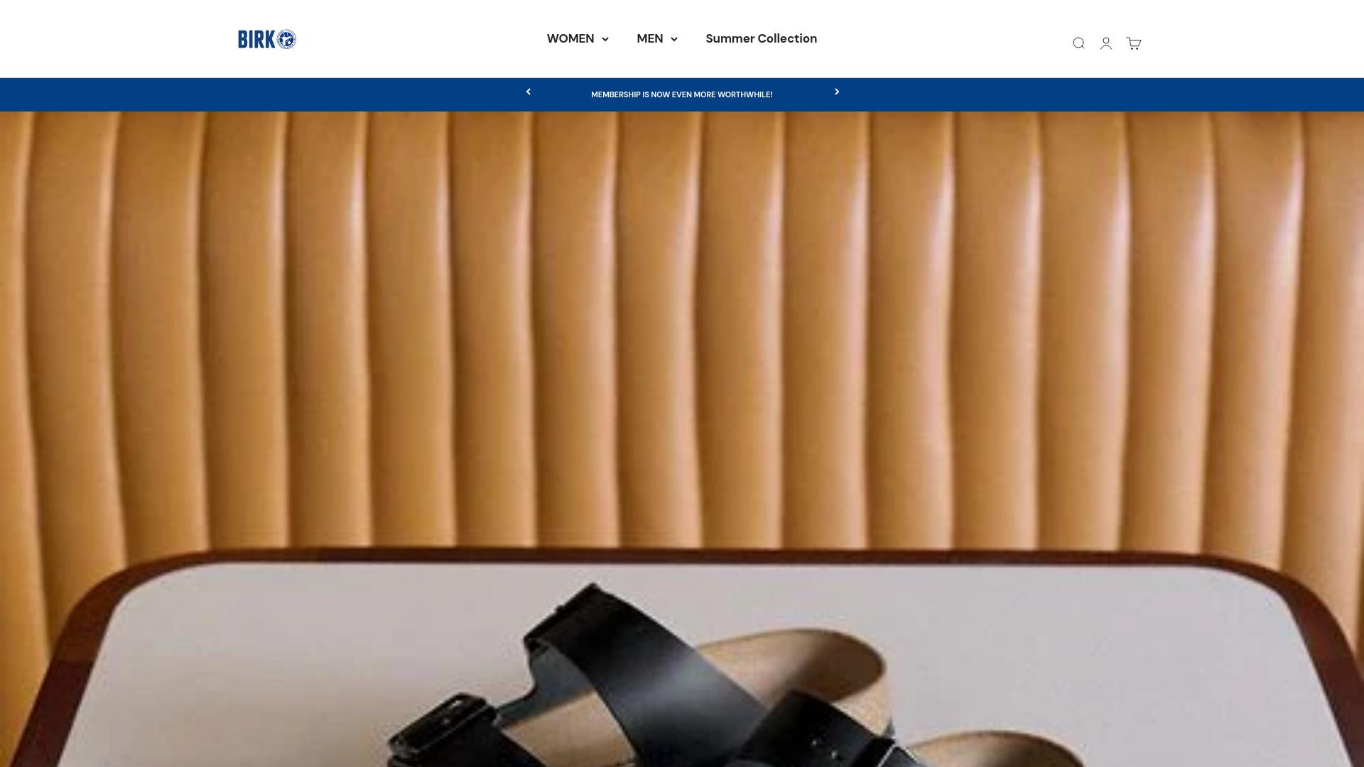 Die Webseite bietet eine Auswahl an Fußbekleidung für Damen und Herren an, darunter insbesondere Sandalen. Die präsentierten Produkte scheinen einen Fokus auf modische und komfortable Designs zu legen. Die aktuelle Kollektion wird als „Summer Collection“ bezeichnet, was darauf hinweist, dass die Schuhe besonders für die wärmeren Monate geeignet sein könnten. Die Navigation auf der Seite ist in verschiedene Kategorien unterteilt, die es den Nutzern ermöglichen, gezielt zwischen Damen- und Herrenmodellen zu wählen. Innerhalb dieser Kategorien könnten weitere Filteroptionen zur Verfügung stehen, um Attribute wie Größe oder Farbe auszuwählen, obwohl diese im Screenshot nicht sichtbar sind. Es gibt auch einen Bereich für Benutzeranmeldungen, was darauf hinweisen könnte, dass Nutzer von bestimmten Vorteilen oder Mitgliedschaften profitieren können. Das Bild auf der Seite zeigt eine schwarze Sandale, die auf einem Tisch platziert ist. Der Hintergrund ist in neutralen Farben gestaltet, was den Fokus auf das Produkt lenkt. Diese visuelle Präsentation könnte darauf abzielen, eine ansprechende Darstellung der angebotenen Artikel zu schaffen. Zusätzlich werden möglicherweise Hinweise auf bestimmte Angebote oder Rabatte bereitgestellt, was jedoch aus den gegebenen Informationen nicht klar ersichtlich ist. Der gesamte Seitenaufbau scheint darauf ausgelegt zu sein, Nutzer zu den angebotenen Produkten zu leiten und ein ansprechendes Einkaufserlebnis zu fördern. Die Webseite könnte auch Informationen zu Versandoptionen, Rückgaberechtsregelungen oder anderen relevanten Details für die Kaufabwicklung enthalten. Diese Informationen sind für Nutzer, die an einem Kauf interessiert sind, von Bedeutung, um informierte Entscheidungen treffen zu können. Jedoch sind im aktuellen Screenshot keine konkreten Informationen zu diesen Aspekten sichtbar. Insgesamt bleibt festzuhalten, dass die Webseite auf eine modische und funktionale Fußbekleidung abzielt und den Nutzern verschiedene Möglichkeiten bietet, ihr Einkaufserlebnis zu individualisieren.
