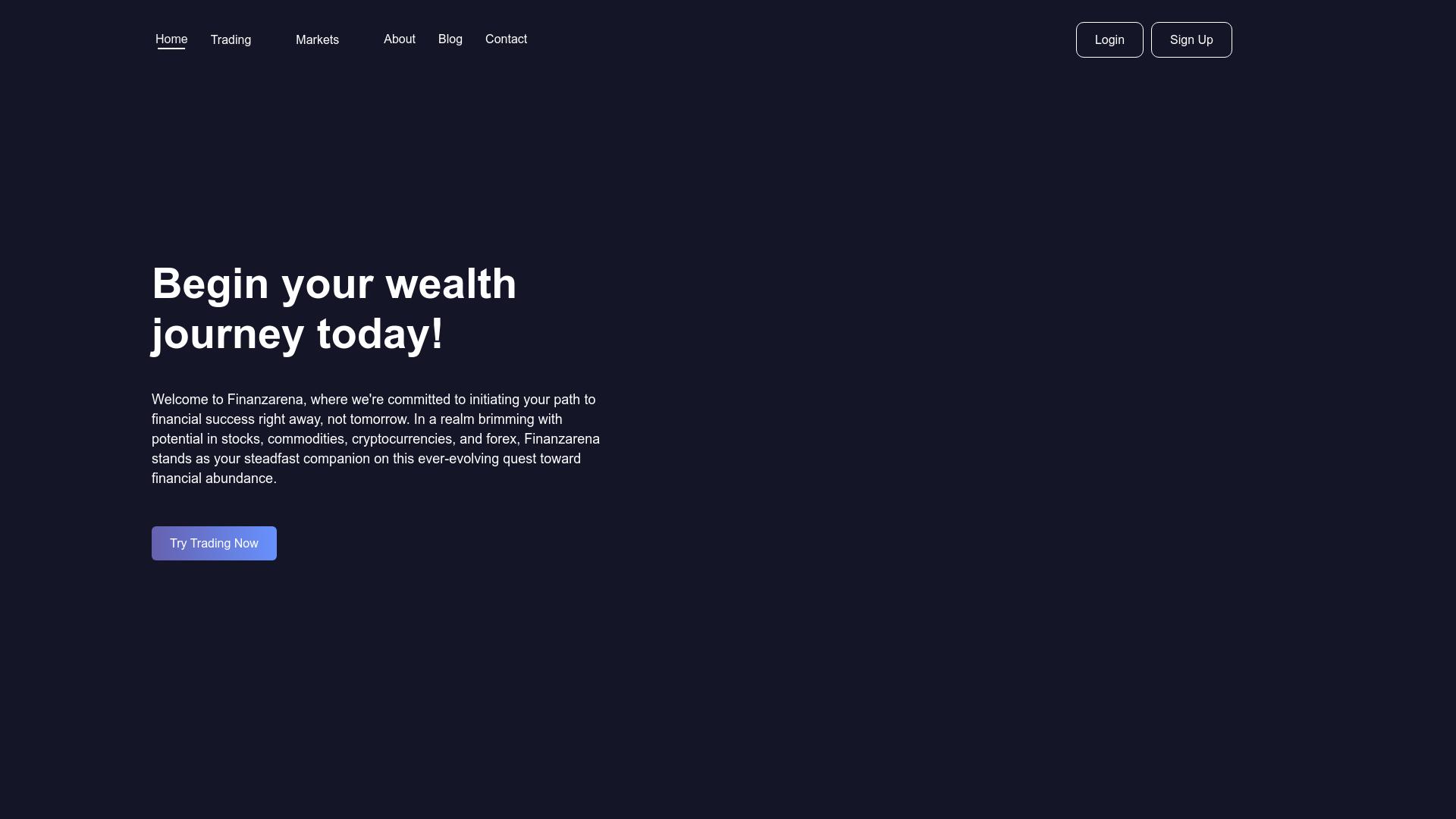 Die Webseite „Finanzarena“ bietet Nutzern Informationen und Möglichkeiten zum Handel mit verschiedenen Finanzinstrumenten, einschließlich Aktien, Rohstoffen, Kryptowährungen und Devisen (Forex). Auf der Homepage wird eine Aufforderung zum Einstieg in die persönliche Finanzreise ausgesprochen, gefolgt von einem Hinweis auf das Engagement der Plattform für den finanziellen Erfolg der Nutzer. Die Seite betont einen aktiven Zugang zu den Finanzmärkten und beschreibt sich als Begleiter in der Suche nach finanzieller Fülle. Es werden keine spezifischen Produkte oder Dienstleistungen detailliert aufgelistet, jedoch wird durch die allgemeine Aufforderung, das Trading zu versuchen, ein aktives Handelsangebot suggeriert. Zusätzlich beinhaltet die Webseite Links zu Bereichen wie „Trading“, „Märkte“, „Über uns“, „Blog“ und „Kontakt“. Diese Links deuten darauf hin, dass die Nutzer weitere Informationen über die Handelsmöglichkeiten, Unternehmensinformationen und möglicherweise Bildungsressourcen im Zusammenhang mit dem Trading finden können. Die verfügbaren Informationen könnten dazu gedacht sein, das Wissen der Nutzer über Finanzmärkte zu erweitern oder Unterstützung beim Handel anzubieten. Des Weiteren hängt von der Benutzeroberfläche ab, ob sich die Plattform sowohl für Anfänger als auch für erfahrene Trader eignet. Das Design der Website ist schlicht und in dunklen Farbtönen gehalten, was auf eine moderne Präsentation abzielt. Ein Login- und ein Registrierungsbereich ist ebenfalls vorhanden, was darauf hindeutet, dass Nutzer ein Konto erstellen können, um Zugang zu den Handelsdiensten zu erhalten. Insgesamt gibt die Webseite einen Überblick über die benötigten Informationen, um möglicherweise in den Handel einzusteigen, ohne dabei spezifische Anleitungen oder tiefere Einsichten in die einzelnen angebotenen Dienstleistungen zu geben.