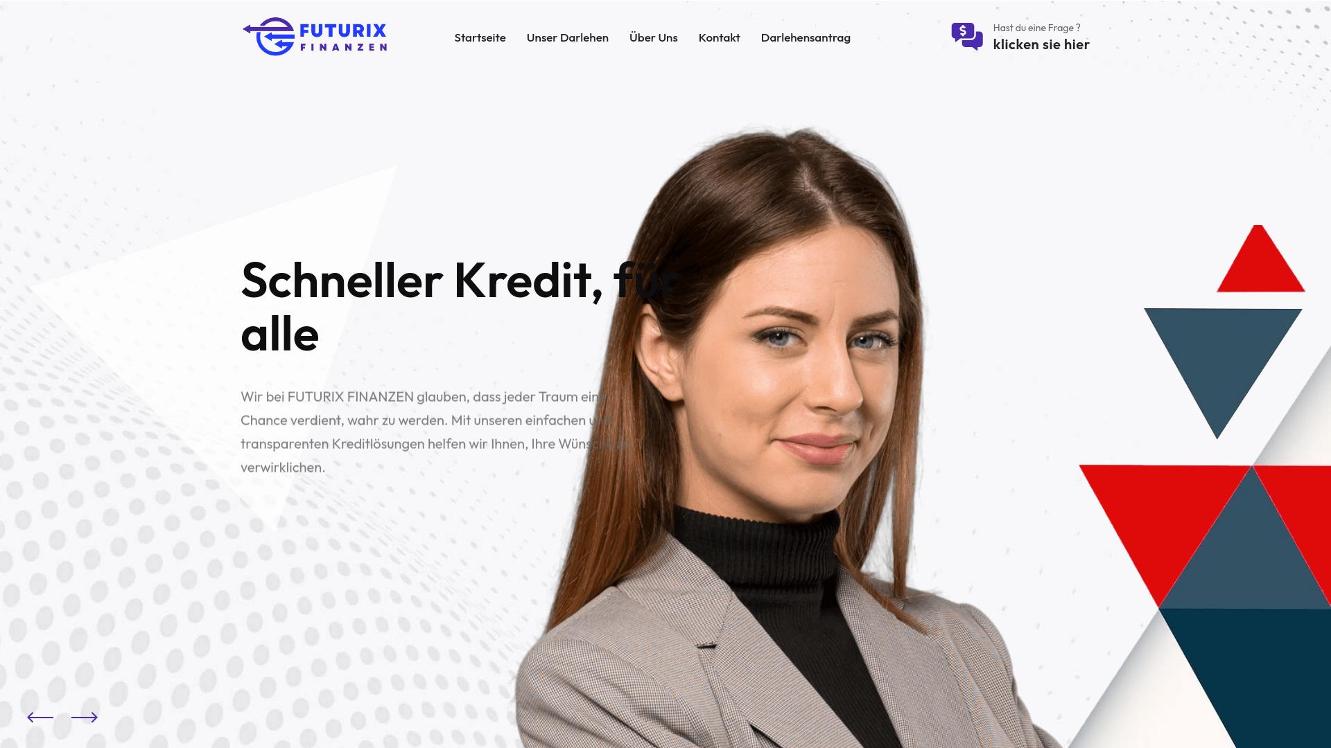 Die Webseite Futurix Finanzen bietet Dienstleistungen im Bereich der Kreditvergabe an. Auf der Startseite wird der Nutzer darauf hingewiesen, dass schnelle Kredite für alle verfügbar sind. Diese Kredite sind darauf ausgelegt, individuelle Wünsche und Pläne der Kunden zu unterstützen. Die Webseite enthält Informationen zu verschiedenen Darlehensoptionen, die in einfacher und transparenter Weise präsentiert werden. Die Benutzer können sich über die Bedingungen der Kreditvergabe informieren und werden dazu ermutigt, einen Darlehensantrag zu stellen. Es wird ein besonderes Augenmerk auf die angebliche Verfügbarkeit für alle Nutzer gelegt, unabhängig von ihrer finanziellen Situation. Zusätzlich wird erwähnt, dass die Kreditlösungen durch eine einfache Antragsprozedur zugänglich sind. Es wird auch ein Kontaktbereich angeboten, in dem potenzielle Kunden Fragen stellen können, um mehr Informationen über die angebotenen Dienstleistungen zu erhalten. Die Kommunikationsmöglichkeit wird durch ein eingeblendetes Chat-Element oder ein Kontaktformular unterstützt. Die Webseite wirkt optisch modern und ansprechend, wobei sie verschiedene grafische Designelemente nutzt, um Informationen zu präsentieren und eine einladende Atmosphäre zu schaffen. Neben den beschriebenen Dienstleistungen sind keine weiteren spezifischen Informationen oder Angebote zu finden, die über die Kreditvergabe hinausgehen. Insgesamt fokussiert die Seite auf die Bereitstellung von Krediten, einem schnellen Antragsprozess und der Unterstützung bei finanziellen Bedürfnissen. Der Nutzer findet eine einfache Navigation und Zugriff auf grundlegende Informationen bezüglich der Kreditdienstleistungen. Die Webseite schließt mit der Aufforderung, darauf basierend weitere Schritte zu unternehmen, um die finanziellen Ziele zu erreichen.