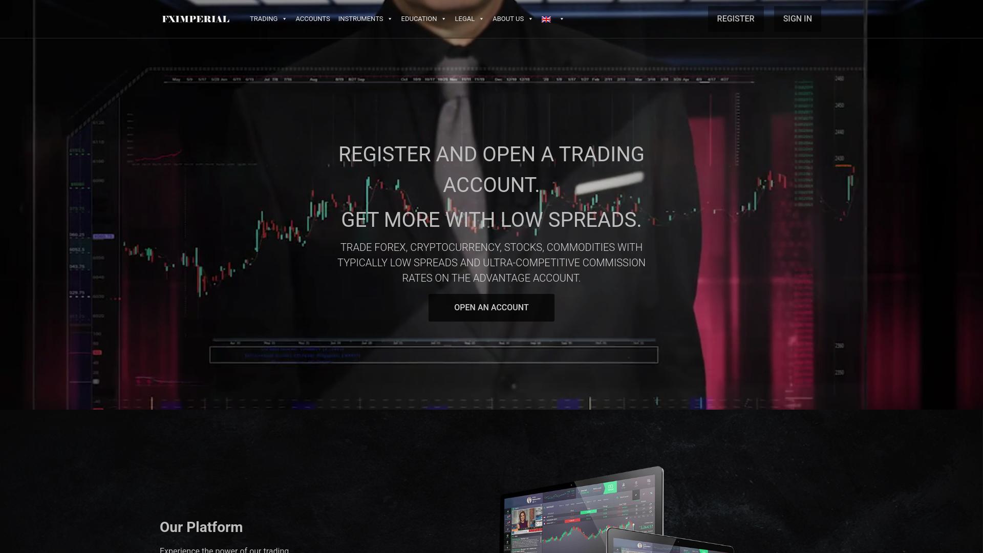 Die Webseite mit dem Namen FXImperial bietet verschiedene Dienstleistungen im Bereich des Online-Handels an. Sie richtet sich an Nutzer, die Interesse an einer Handelsplattform für Finanzprodukte wie Forex, Kryptowährungen, Aktien und Rohstoffe haben. Auf der Hauptseite wird aufgefordert, ein Handelskonto zu registrieren, um von niedrigeren Spreads und wettbewerbsfähigen Kommissionen zu profitieren. Das Angebot der Webseite beinhaltet die Möglichkeit, eine Vielzahl von Finanzinstrumenten zu handeln, wobei insbesondere auf die niedrigen Spreads und die günstigen Konditionen für das „Advantage“-Konto hingewiesen wird. Dies deutet darauf hin, dass die Plattform Benutzern eine Vielzahl von Handelsmöglichkeiten zur Verfügung stellt, mit dem Ziel, eine benutzerfreundliche und potenziell lukrative Handelsumgebung zu schaffen. Zudem wird erwähnt, dass die Plattform eine benutzerfreundliche Anwendung bereitstellt, die auf verschiedenen Geräten genutzt werden kann, was den Zugang zu den Handelsdiensten erleichtert. Die Präsentation der Webseite ist visuell ansprechend und enthält grafische Elemente, die auf Marktdaten und Handelsdiagramme hindeuten, was darauf abzielt, den Nutzern eine visuelle Darstellung ihrer Handelsaktivitäten zu bieten. Des Weiteren wird auf Bildungsressourcen hingewiesen, die möglicherweise Schulungen oder Informationen zur Verbesserung der Handelskenntnisse anbieten. Diese Bildungsmaterialien könnten potenziellen Händlern helfen, sich mit den Handelspraktiken und Strategien vertraut zu machen, um informierte Entscheidungen zu treffen. Kennzeichnend für die Webseite ist die Bereitstellung von Calls-to-Action, die Nutzer dazu auffordern, ein Konto zu eröffnen und die Plattform auszuprobieren. Die Informationen auf der Seite sind darauf ausgerichtet, Benutzer anzuziehen, die sich für den Handel von Finanzinstrumenten interessieren und möglicherweise eine aktive Handelsstrategie verfolgen möchten. Insgesamt bietet die Webseite FXImperial eine Plattform, die sich auf den Online-Handel spezialisiert hat, und enthält Elemente, die sowohl die Eröffnung von Handelskonten als auch den Zugang zu verschiedenen Handelsressourcen und Unterstützungsmöglichkeiten thematisieren.