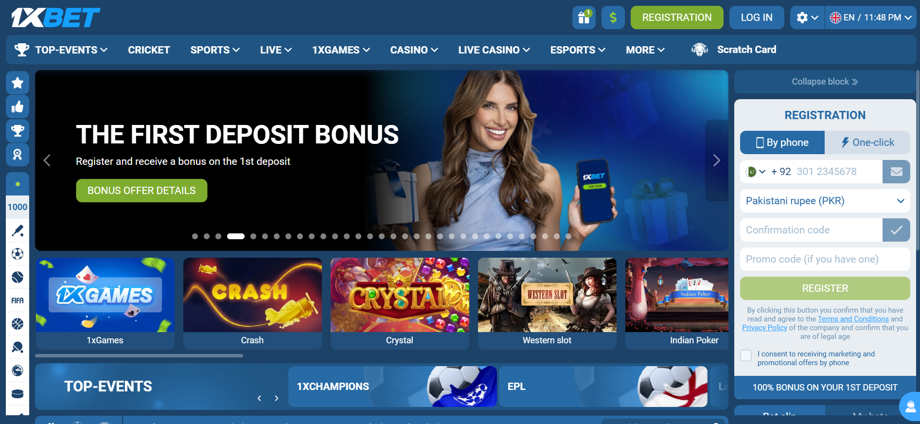 Die Webseite 1xbet.com bietet eine Plattform für verschiedene Wett- und Glücksspielaktivitäten an. Auf der Homepage werden mehrere Kategorien angezeigt, darunter Sportwetten, Live-Wetten, Casinospiele und verschiedene Spieloptionen unter „1xGames“. Besondere Funktionen der Seite sind unter anderem die Möglichkeit zur Registrierung über verschiedene Methoden, darunter eine telefonische Registrierung und eine Ein-Klick-Option. Nach der Anmeldung wird ein Bonus auf die erste Einzahlung angeboten, dessen Details auf der Webseite einsehbar sind. Zu den verfügbaren Wettmöglichkeiten gehören Top-Events in verschiedenen Sportarten, einschließlich Cricket, Fußball und anderen populären Sportarten. Zudem umfasst das Angebot Casino-Spiele wie Slots und Tischspiele, darunter Titel wie „Crash“, „Crystal“ und „Indian Poker“. Es wird eine Auswahl an Live-Casino-Spielen präsentiert, die Interaktivität und Echtzeit-Gaming-Angelegenheiten anbieten. Die Webseite zeigt auch könnte Benutzerprofile an, in denen Spieler ihre Wettverläufe und Einnahmen einsehen können. Zusätzlich wird eine mobile Version der Plattform erwähnt, die Zugang auf Smartphones oder Tablets ermöglicht. Zahlungsmethoden sind auf der Seite ebenfalls spezifiziert, wobei unterschiedliche Optionen unterstützt werden, um Einzahlungen und Auszahlungen zu erleichtern. Die Benutzeroberfläche ist grafisch gestaltet und soll den Zugang zu den verschiedenen Kategorien und Spielen ermöglichen. Die Seite ist mehrsprachig, wobei unter anderem Englisch und Deutsch verfügbar zu sein scheinen. Ein Kontaktbereich ist vorhanden, um Nutzern Unterstützung anzubieten. In der Regel wird die Seite als eine zentrale Anlaufstelle für Benutzer angesehen, die an Sportwetten und Online-Spielen interessiert sind.