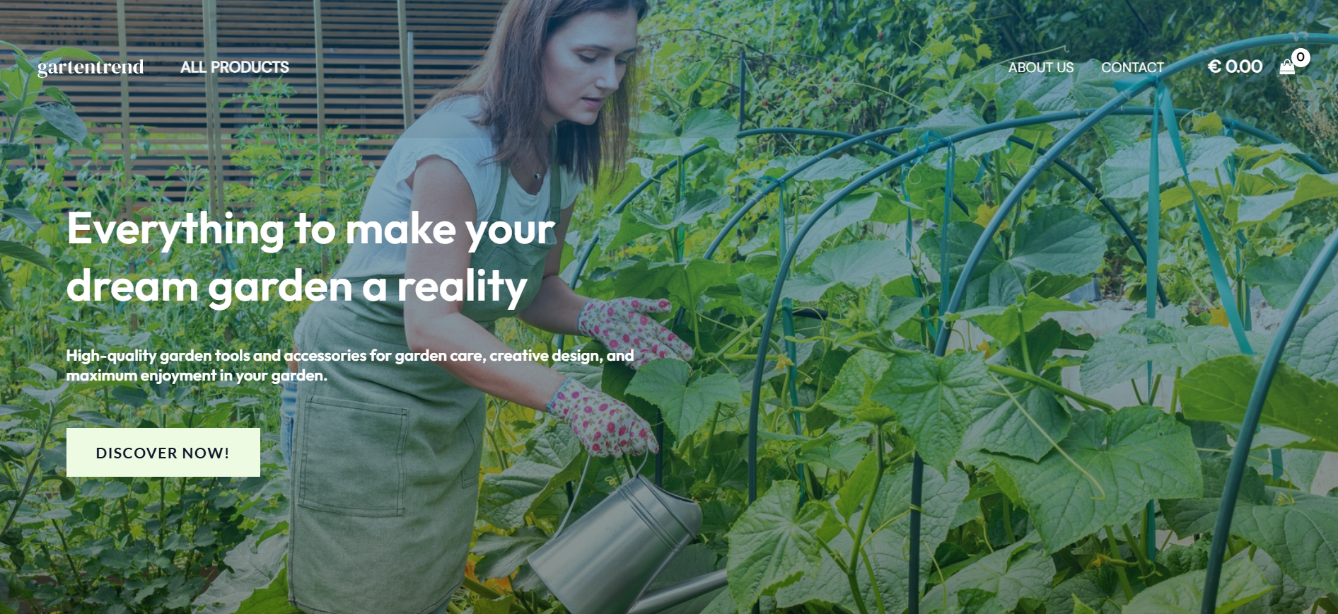 Die Webseite „gartentrend“ bietet eine Vielzahl von Produkten, die auf die Pflege und Gestaltung von Gärten ausgerichtet sind. Der Schwerpunkt liegt auf hochwertigen Gartengeräten sowie Zubehör, das für die Gartenarbeit verwendet werden kann. Die dargestellten Produkte werden beschrieben als geeignet für verschiedene Aufgaben im Garten, einschließlich der Pflege von Pflanzen und der Umsetzung kreativer Designideen. Auf der Homepage wird betont, dass die angebotenen Produkte dazu beitragen können, die individuellen Vorstellungen eines Traumgartens zu verwirklichen. Die Nutzer werden ermutigt, die verfügbaren Produkte zu entdecken, wobei eine Schaltfläche zur direkten Aufforderung zur Erkundung der Produktpalette angeboten wird. Es ist außerdem ersichtlich, dass die Webseite über Kategorien verfügt, unter denen die verschiedenen Produkte eingeordnet sind, sowie über spezielle Informationen zu den Angeboten. Die Präsentation der Produkte wird durch visuelle Inhalte ergänzt, die die Nutzung der Werkzeuge und Zubehörteile im Garten zeigen. Hierbei steht eine Person im Vordergrund, die mit den angebotenen Werkzeugen arbeitet. Diese Bildsprache soll anschaulich verdeutlichen, wie die Produkte im praktischen Einsatz verwendet werden können. Zusätzlich bietet die Webseite einen Bereich mit Informationen über das Unternehmen selbst, sowie Kontaktmöglichkeiten für Kundenfragen. Preisangaben sind ebenfalls auf der Seite zu finden, jedoch wird ein Preis von 0,00 € angezeigt, was unklar bleibt und möglicherweise auf eine technische Angabe oder ein noch nicht aktualisiertes Angebot hindeutet. Die Webseite richtet sich somit an Gartenliebhaber und Personen, die an der Pflege und Gestaltung von Gärten interessiert sind, und führt eine Reihe an Produkten auf, die als hilfreich für die Gartenarbeit beschrieben werden.