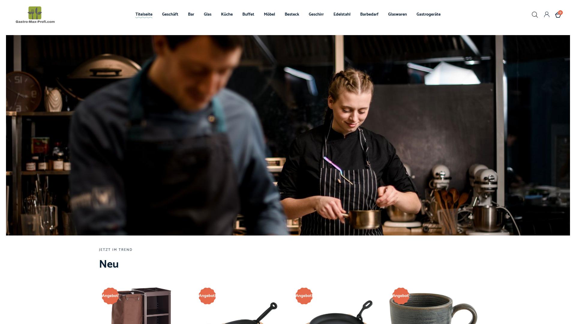 Die Webseite gastro-max-profi.com bietet eine Auswahl an Produkten für die Gastronomie und den Gastronomiebedarf an. Die Hauptkategorien umfassen verschiedene Bereiche wie Bar, Küche, Buffet und Möbel. Innerhalb dieser Kategorien sind unterschiedliche Artikel gelistet, die für den Einsatz in gastronomischen Betrieben geeignet sind. In der Kategorie „Glas“ finden sich Artikel wie Gläser in verschiedenen Größen und Formen, die für Getränke und Cocktails verwendet werden können. Die Kategorie „Küche“ beinhaltet Küchenutensilien, Kochgeschirre und Geräte, die für die Zubereitung von Speisen erforderlich sind. Unter „Buffet“ werden unterschiedliche Produkte angeboten, die für die Präsentation von Speisen und Getränken genutzt werden können. Zusätzlich wird in der Rubrik „Möbel“ eine Reihe von Möbelstücken präsentiert, die in gastronomischen Einrichtungen eingesetzt werden können, darunter Tische und Stühle. In den Sektionen für Besteck, Geschirr und Edelstahlinstrumente sind Produkte für den gedeckten Tisch sowie spezielle Kochutensilien aufgeführt, die eine professionelle Ausstattung ermöglichen sollen. Es wird auch auf spezielle Angebote hingewiesen, welche die Nutzer auffordern, die dargestellten Produkte näher zu betrachten. Die Webseite scheint zudem regelmäßig neue Produkte einzuführen, wie aus der Rubrik „Jetzt im Trend“ hervorgeht. Hier werden neue Artikel, die kürzlich zum Sortiment hinzugefügt wurden, herausgestellt. Benutzer können auf der Webseite nach Artikeln suchen und die verfügbaren Produkte nach ihren Bedürfnissen filtern. Die Nutzer haben die Möglichkeit, durch die verschiedenen Kategorien zu navigieren und die gewünschten Produkte direkt in einen Warenkorb zu legen. Der Internetauftritt scheint darauf ausgelegt, Fachleuten aus der Gastronomie ein breites Sortiment an Artikeln anzubieten, die für den täglichen Betrieb in einem Restaurant oder Café benötigt werden.