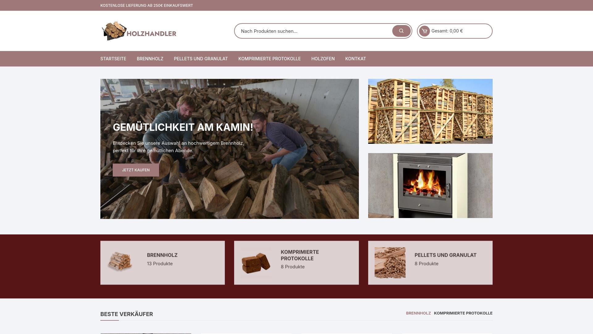 Die Webseite „holzhandler“ bietet eine Auswahl an Produkten, die in erster Linie auf den Heizbedarf ausgerichtet sind. Auf der Hauptseite wird eine breite Palette von Brennstoffen präsentiert, die für den Einsatz in Kaminen und Heizöfen geeignet sind. Das Angebot umfasst verschiedene Kategorien, darunter Brennholz, komprimierte Protokolle sowie Pellets und Granulat. Im Bereich „Brennholz“ sind 13 unterschiedliche Produkte gelistet. Diese Kategorie wird vermutlich Produkte mit unterschiedlichen Holzarten und -verpackungen umfassen, die für die Verwendung in offenen Kaminen oder anderen Heizsystemen vorgesehen sind. In der Sektion für „komprimierte Protokolle“ finden sich 8 Produkte. Hierbei handelt es sich möglicherweise um Produkte, die aus komprimierten Holzfasern oder ähnlichen Materialien bestehen, die eine alternative Heizquelle bieten. Der Abschnitt „Pellets und Granulat“ beinhaltet ebenfalls 8 Produkte, die in der Regel kleine Holzpellets sind, die für moderne Heizsysteme, wie Pelletöfen, geeignet sind. Die Webseite betont eine einfache Handhabung und die Möglichkeit für Nutzer, Produkte für gemütliche Abende am Kamin auszuwählen. Ein zusätzlicher Anreiz auf der Webseite ist der Hinweis auf kostenlose Lieferung ab einem Einkaufswert von 250 Euro. Dies könnte für Kunden von Interesse sein, die größere Mengen an Brennstoffen benötigen. Die visuelle Gestaltung der Seite zeigt Bilder, die eine große Menge an Holzstücken sowie einen Kaminofen darstellen. Solche Darstellungen können dazu dienen, ein Bild von der Verwendbarkeit der Produkte zu vermitteln. Die Navigation auf der Webseite erfolgt durch ein Menü, das den Zugriff auf die verschiedenen Produktkategorien sowie Kontaktinformationen ermöglicht. Insgesamt bietet die Webseite „holzhandler“ eine Produktpalette an, die sich spezifisch auf den Verkauf von Heizmaterialien konzentriert, wobei die Nutzer eine klare Struktur und möglicherweise eine einfache Kaufabwicklung erwarten können.