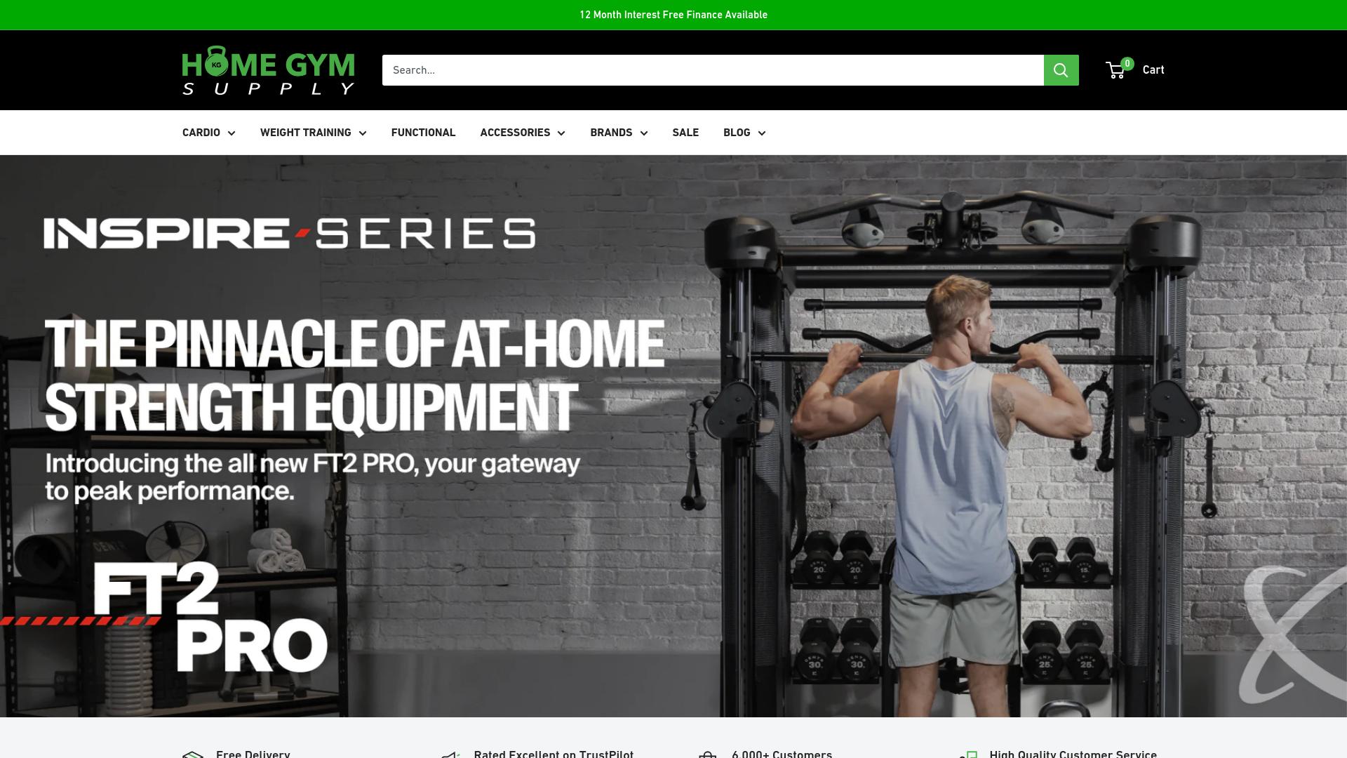 Die Webseite „Home Gym Supply“ bietet verschiedene Produkte für das Heimtraining an, wobei der Fokus auf Kraft- und Ausdauertraining liegt. Im Mittelpunkt stehen verschiedene Geräte und Ausstattungen, die sich für eine sportliche Betätigung im häuslichen Umfeld eignen. Auf der Webseite wird unter anderem eine Reihe von Kraftgeräten, insbesondere das Modell „FT2 PRO“, beworben, das als umfassende Lösung für das Krafttraining zu Hause beschrieben wird. Dieses Gerät soll eine Vielzahl von Übungen ermöglichen und ist vermutlich darauf ausgelegt, Nutzern eine effektive Trainingsmöglichkeit zu bieten. Darüber hinaus werden auch verschiedene weitere Fitnessgeräte und Zubehörartikel, wie Hanteln und Trainingsbänder, angeboten. Die Produkte sind nach Kategorien wie „Cardio“, „Weight Training“ und „Functional“ gegliedert, was Nutzern eine gezielte Auswahl ermöglicht. Es gibt auch einen Bereich für „Zubehör“, in dem ergänzende Produkte aufgeführt werden. Ein „Sale“-Bereich könnte Rabatte auf bestimmte Artikel beinhalten, wobei die genauen Angebote nicht spezifiziert sind. Die Webseite weist darauf hin, dass kostenloser Versand angeboten wird. Zudem wird eine Finanzierungsoption mit einer Laufzeit von 12 Monaten ohne Zinsen erwähnt, die es Nutzern ermöglichen könnte, die Produkte in Raten zu erwerben. Neben den Verkaufsoptionen findet sich auch ein Blog, der möglicherweise Informationen, Tipps oder Anleitungen rund um das Thema Fitness und Training bietet. Die allgemeine Navigation der Seite scheint darauf ausgelegt zu sein, ein benutzerfreundliches Erlebnis zu schaffen, indem sie eine klare Struktur und verschiedene Filteroptionen bereitstellt. Das allgemeine Ziel der Webseite scheint darin zu bestehen, Fitnessenthusiasten Produkte zur Verfügung zu stellen, die sie benötigen, um ihr Training zu Hause effizient und effektiv zu gestalten.