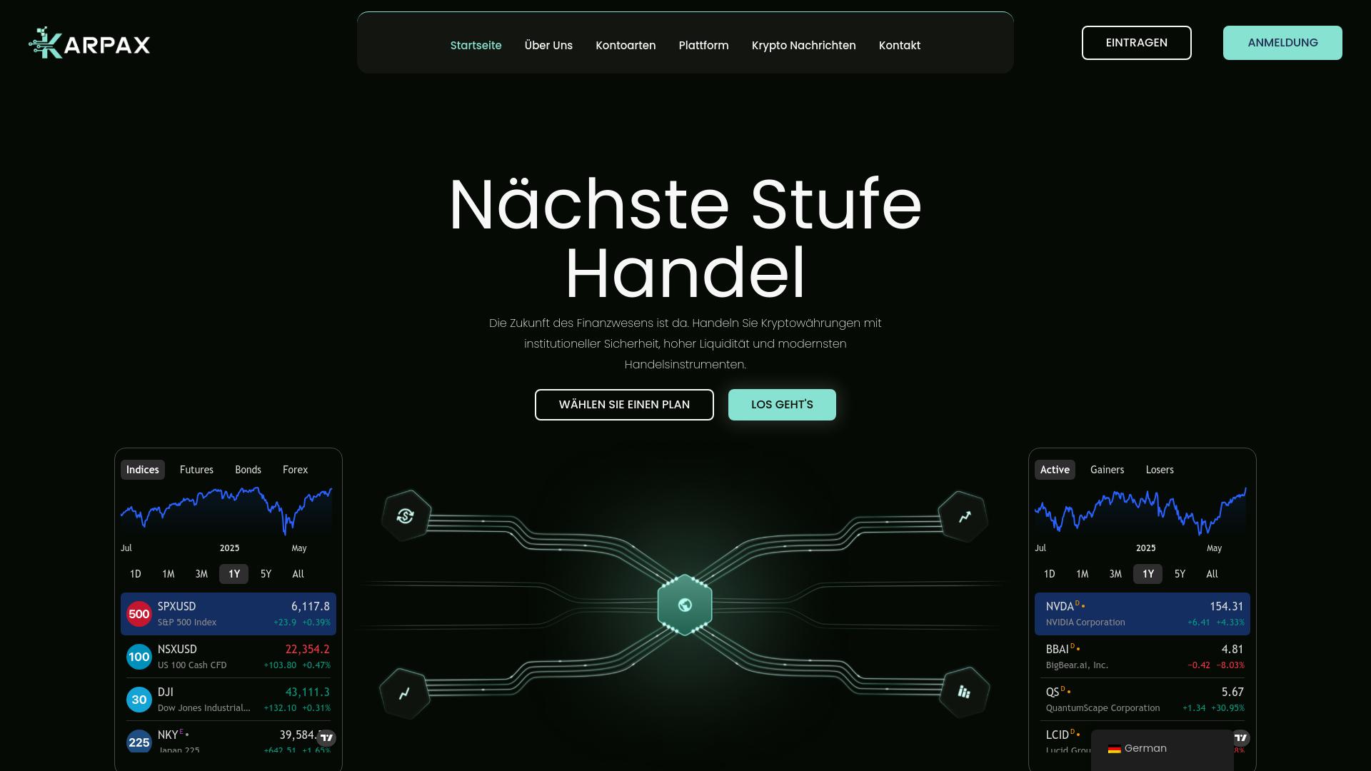 Die Webseite ARPAX bietet eine Plattform für den Handel mit Kryptowährungen und anderen Finanzinstrumenten. Sie ist auf den ersten Blick auf den Hochfrequenzhandel und den Devisenmarkt ausgerichtet. Der Hauptfokus liegt auf Krypto-Handelsdiensten, die mit einem hohen Sicherheitsniveau und einer hohen Liquidität verbunden sind. Die Plattform betont moderne Handelsinstrumente, die es den Nutzern ermöglichen, auf verschiedene Finanzprodukte zuzugreifen. Auf der Seite werden spezifische Dienstleistungen und Funktionen hervorgehoben. Diese umfassen unter anderem den Zugang zu verschiedenen Handelsarten wie Indizes, Futures, Anleihen und dem Devisenmarkt (Forex). Es werden aktuelle Preisinformationen und Kursentwicklungen dargestellt, sodass Nutzer einen Überblick über die Marktbedingungen erhalten können. Des Weiteren weist die Plattform darauf hin, dass sie ein benutzerfreundliches Interface bietet, das sowohl für Anfänger als auch für erfahrene Trader geeignet sein soll. Zudem wird auf die Möglichkeit hingewiesen, verschiedene Konten zu wählen, die möglicherweise unterschiedliche Handelsbedingungen, Gebührenstrukturen und Funktionen bieten. Die Webseite enthält des Weiteren diverse Informationen, die den Nutzern helfen sollen, den Handel besser zu verstehen. Dazu gehören möglicherweise auch Bildungsressourcen und regelmäßige Marktanalysen, die Informationen über aktuelle Trends und Kursbewegungen liefern. Zusätzlich gibt es Anmeldefunktionen, die es den Nutzern ermöglichen, ein Konto zu erstellen, um Zugang zu den beschriebenen Handelsdiensten zu erhalten. Die Webseite bietet den Nutzern die Möglichkeit, sich über aktuelle Entwicklungen im Kryptomarkt zu informieren, sowie spezifische Handelsstrategien und -ansätze zu erkunden. Insgesamt präsentiert sich die Plattform als ein umfassendes Angebot für den modernen Handel mit digitalen Währungen und anderen Finanzinstrumenten und verspricht eine fortschrittliche Erfahrung im Handel.