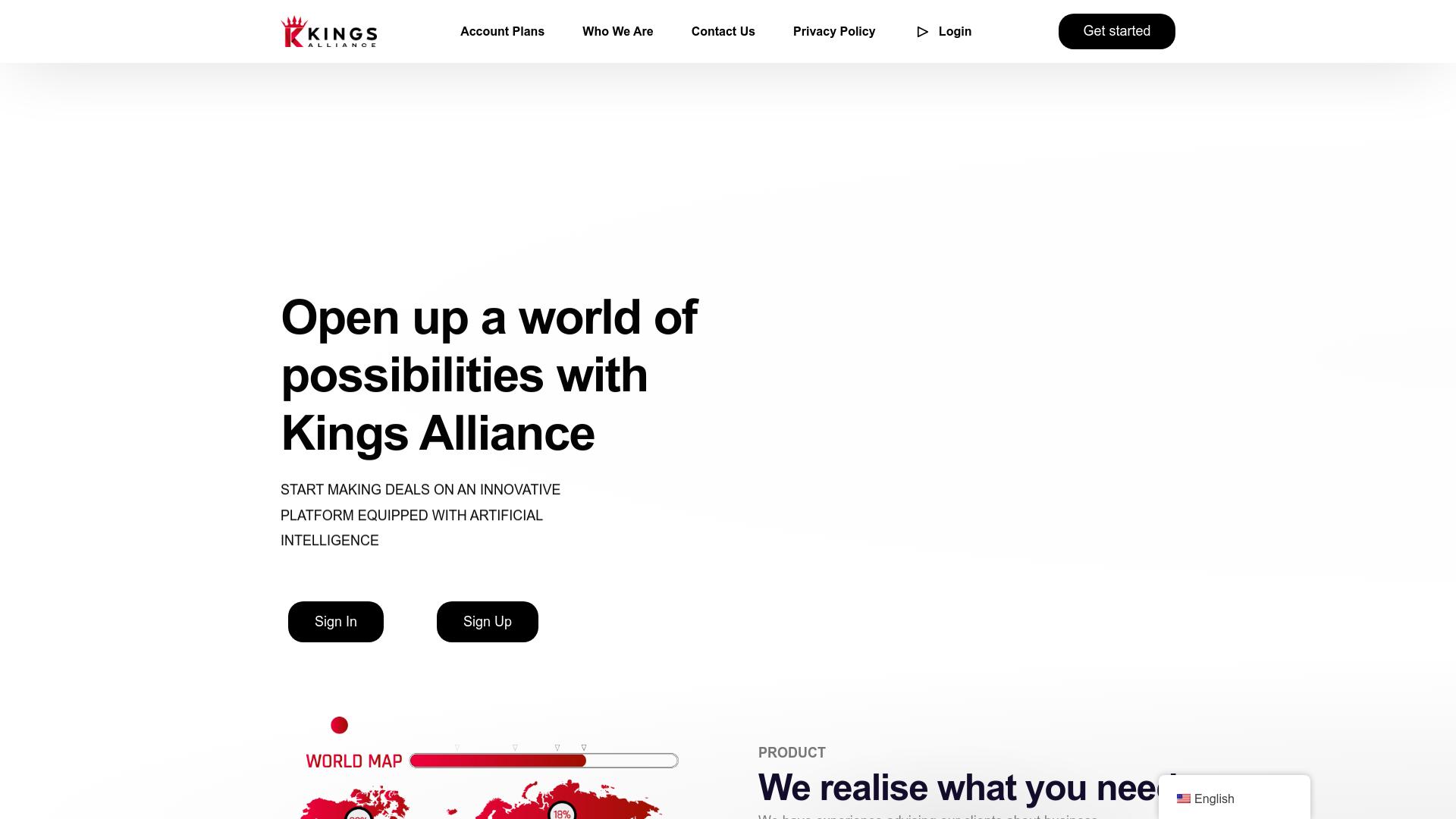 Die Webseite „Kings Alliance“ bietet Nutzern die Möglichkeit, auf einer Plattform, die mit künstlicher Intelligenz ausgestattet ist, Geschäfte abzuwickeln. Die Hauptüberschrift auf der Seite hebt hervor, dass man mit „Kings Alliance“ eine Vielzahl von Möglichkeiten entdecken kann. Dies deutet darauf hin, dass die Plattform verschiedene Dienstleistungen oder Produkte anbietet, die möglicherweise für den geschäftlichen oder finanziellen Bereich relevant sind. Auf der Seite findet sich eine Einladung zum Anmelden oder Einloggen, was darauf hindeutet, dass Nutzer ein Konto erstellen müssen, um die angebotenen Funktionen oder Dienstleistungen nutzen zu können. Es scheint auch verschiedene Account-Pläne zu geben, die möglicherweise unterschiedliche Zugangsebenen oder Funktionen innerhalb der Plattform anbieten, obwohl die spezifischen Details zu diesen Plänen nicht auf der Startseite ersichtlich sind. Die Webseite enthält eine Weltkarte, die scheint, den Nutzer über geografische Aspekte oder möglicherweise Marktanalysen zu informieren. Dies könnte darauf hindeuten, dass die Plattform international tätig ist oder sich auf einen globalen Markt konzentriert. Unter dem Abschnitt „Produkt“ wird erwähnt, dass die Webseite den Nutzern helfen möchte, ihre Bedürfnisse zu realisieren. Dies könnte darauf hindeuten, dass es um maßgeschneiderte Lösungen oder Dienstleistungen für individuelle Nutzer oder Unternehmen geht, allerdings ohne genauere Angaben zu machen, welche Arten von Produkten oder Dienstleistungen konkret angeboten werden. Zudem wird in der Beschreibung erwähnt, dass die Plattform innovativ ist, was möglicherweise auf moderne Technologie oder neuartige Ansätze hinweist, die bei den angebotenen Dienstleistungen zum Einsatz kommen. Die genauen Funktionen der Künstlichen Intelligenz sowie deren Rolle innerhalb der Plattform werden jedoch nicht näher erläutert. Insgesamt können Nutzer auf dieser Webseite eine Registrierung vornehmen, um potenziell Zugang zu verschiedenen geschäftlichen Möglichkeiten zu erhalten, während die spezifischen Inhalte, Angebote und die Funktionsweise der Plattform nicht detailliert ausgeführt werden.