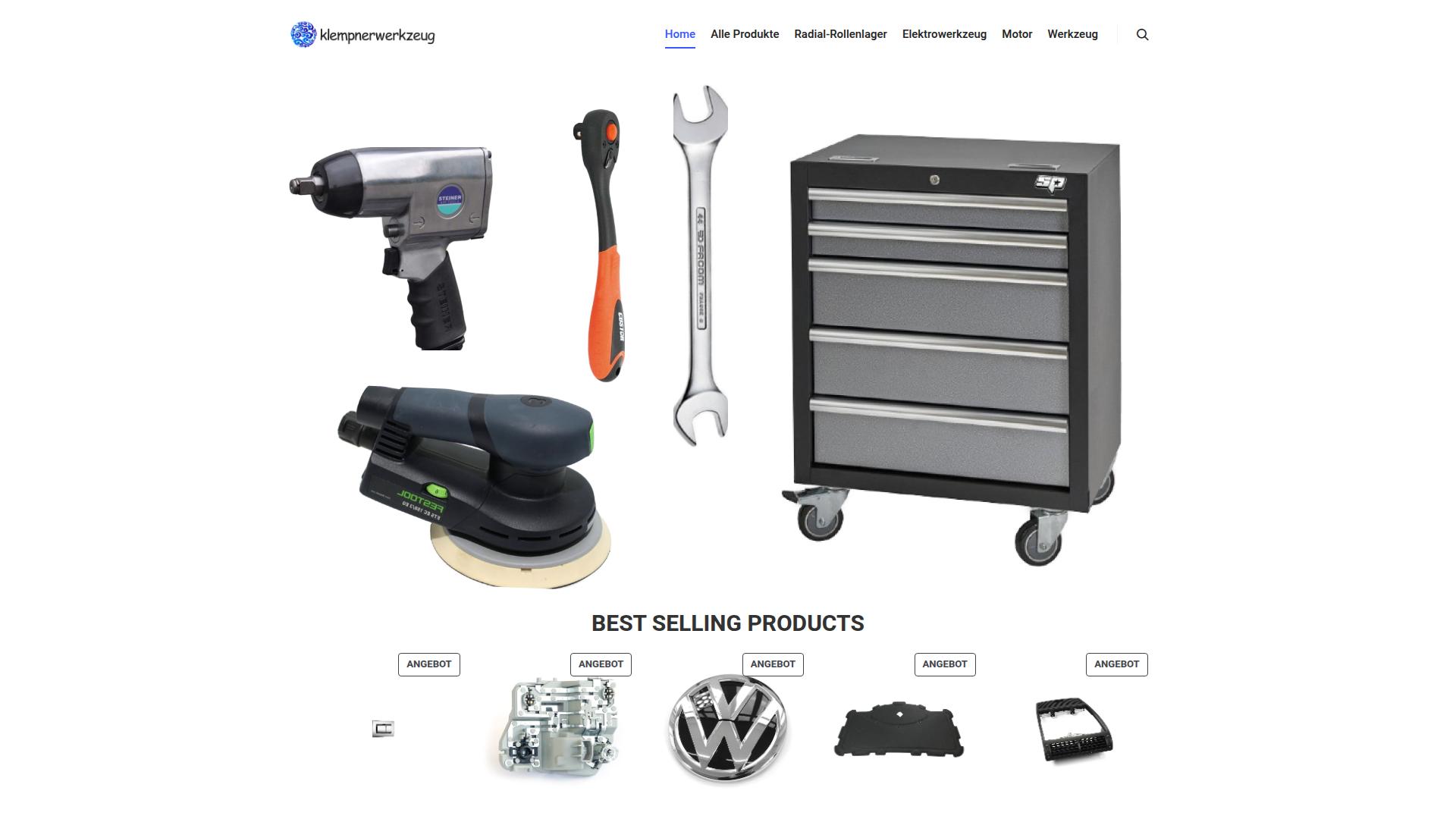 Die Webseite „klempnerwerkzeug.de“ bietet eine Vielzahl von Werkzeugen und Zubehör für handwerkliche Arbeiten an. Die Produktpalette umfasst sowohl elektrische als auch manuell betriebene Werkzeuge. Zu den angebotenen Waren zählen unter anderem Druckluftwerkzeuge, wie eine Druckluftschrauber, ein Schleifgerät für verschiedene Anwendungen, sowie vorgefertigte Werkzeuge wie ein Satz von Steckschlüsseln und eine Werkstattaufbewahrung in Form eines Werkzeugwagens. Im oberen Bereich der Seite werden Kategorien wie „Alle Produkte“, „Radial-Rollenlager“, „Elektrowerkzeug“, „Motor“ und „Werkzeug“ angezeigt, die dem Nutzer eine gezielte Navigation erlauben sollen. Dessen ungeachtet ist die Darstellung einzelner Produkte prominent platziert, wobei einige bestverkaufte Produkte hervorgehoben werden. Diese Produkte scheinen exemplarisch für die gesamte Sortimentstruktur der Webseite zu stehen. Die visuellen Elemente der Seite bestehen aus Bildern der angebotenen Produkte, die zusammen mit entsprechenden Beschreibungen dargestellt werden. Diese bieten den Besuchern einen Überblick über die Erscheinung und Hauptmerkmale der Werkzeuge, die verkauft werden. Unter jedem Produktbild erscheinen verschiedene Angebote, was darauf hinweisen könnte, dass möglicherweise Aktionen oder Rabatte angeboten werden. Bezüglich der Zahlung oder der Versandmethoden gibt die Webseite jedoch keine direkten Informationen bekannt, was für einen potenziellen Käufer von Bedeutung sein könnte. Auch Hinweise zu Rückgabebedingungen oder Kundensupport sind nicht offensichtlich und könnten für Käufer Vertrauen schaffen oder Bedenken hervorrufen. Zusammenfassend lässt sich sagen, dass die Webseite auf Werkzeuge aus den Bereichen Klempnerarbeiten sowie Allgemeinwerkzeug und Elektrowerkzeug fokussiert ist und eine Übersicht über Produkte bietet, die für handwerkliche Arbeiten von Relevanz sein könnten.