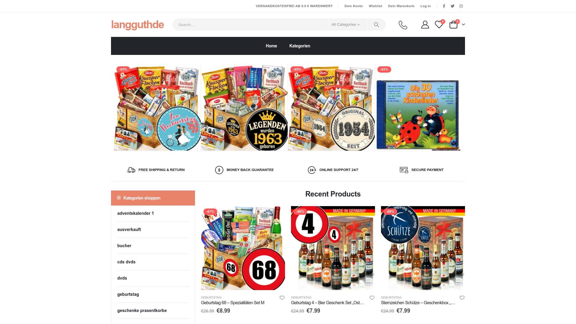 Die Webseite langguth.de bietet eine Auswahl an verschiedenen Produkten, die größtenteils anlässlich von besonderen Anlässen, wie Geburtstagen, festgehalten sind. Die Seite präsentiert eine Vielzahl von Geschenkartikeln, darunter Geschenksets, die für Jubiläen und Feierlichkeiten konzipiert sind. Diese Sets enthalten verschiedene Artikel, die typischerweise mit der Kultur und den Traditionen aus der ehemaligen DDR assoziiert werden. Das Produktangebot umfasst unter anderem Lebensmittel, Getränke und Spielzeug in unterschiedlichen Kategorien. Auffällig ist das Angebot an Biergeschenkboxen, die verschiedene Biersorten mit regionalem Bezug enthalten. Zudem werden spezielle Sets angeboten, wie beispielsweise „Spezialitäten Set M“, das eine Auswahl an typischen Ostdeutschen Produkten umfasst. Neben den Lebensmittel- und Getränkesets gibt es auch eine Rubrik für Bücher, CDs und DVDs, die kulturelle Aspekte und Unterhaltung abdecken. Die auf der Webseite angezeigten Artikel sind mit Preisnachlässen versehen, was eine Preisersparnis im Vergleich zu den regulären Preisen andeutet. Die Webseite weist außerdem auf eine Rückgabegarantie sowie kostenlosen Versand ab einem bestimmten Bestellwert hin. Zusätzlich wird ein 24/7 Support erwähnt, der den Nutzern bei Fragen und Anliegen zur Verfügung steht. Es wird darauf hingewiesen, dass die Zahlungsmethoden gesichert sind, was darauf hindeutet, dass die Transaktionen auf der Webseite unter Berücksichtigung von Sicherheitsaspekten abgewickelt werden. Die Struktur der Webseite ermöglicht den Nutzern eine einfache Navigation durch die verschiedenen Kategorien, um gezielt nach bestimmten Produkten oder Geschenkideen zu suchen. Die Darstellungen der Produkte sind visuell ansprechend und verfügen über detaillierte Informationen zur Verfügbarkeit und zu den Preisen. Insgesamt bietet die Webseite eine breite Palette an Produkten, die vor allem auf nostalgische Werte und regionaltypische Angebote abzielt, ohne jedoch in der Beschreibung der Produkte oder der Unternehmensphilosophie eine Wertung über deren Qualität oder Seriosität vorzunehmen.