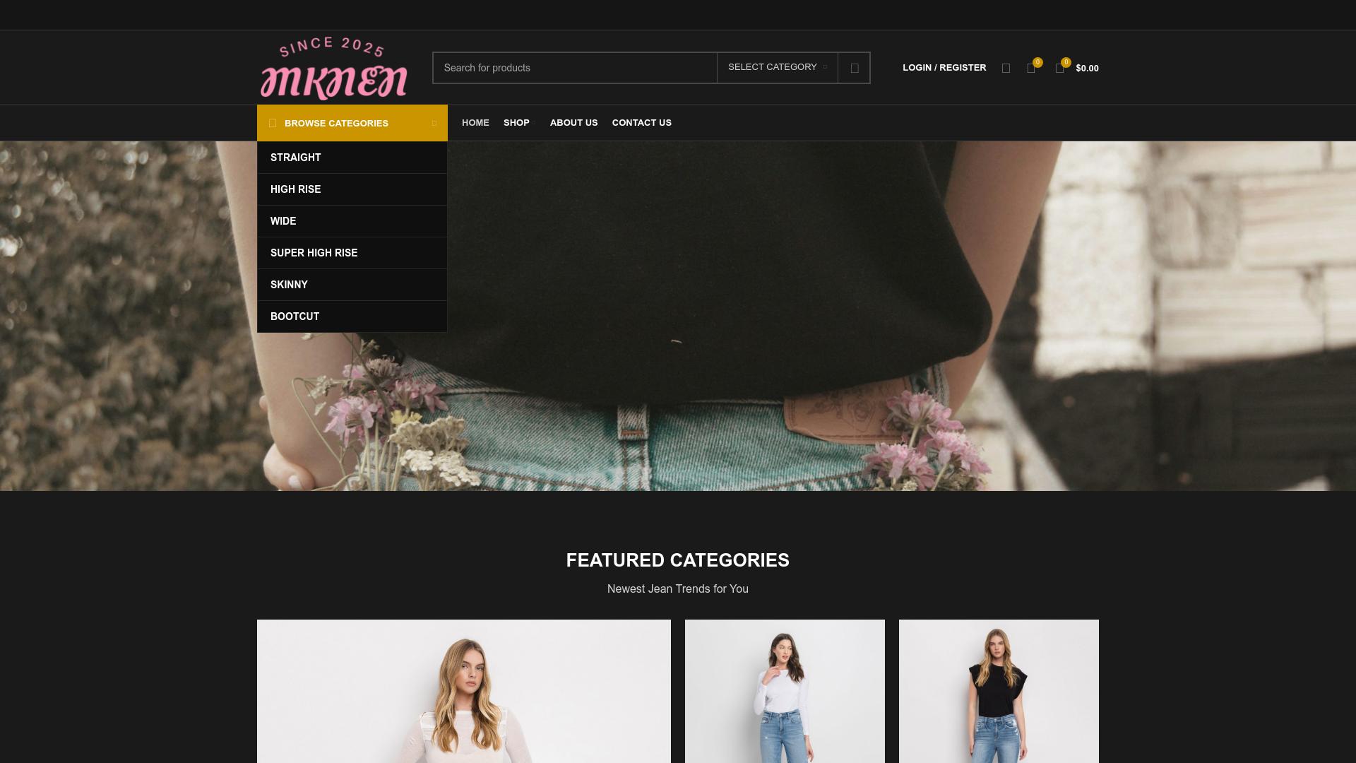 Die Webseite ist auf den Verkauf von Kleidung spezialisiert, insbesondere von Jeans in verschiedenen Stilrichtungen. Im oberen Bereich der Seite gibt es ein Navigationsmenü mit der Möglichkeit, nach Kategorien zu suchen. Zu den angebotenen Jeansstilen gehören „Straight“, „High Rise“, „Wide“, „Super High Rise“, „Skinny“ und „Bootcut“. Diese Kategorien ermöglichen es den Nutzern, gezielt nach ihren bevorzugten Jeansformen zu filtern. Im unteren Bereich der Seite wird auf sogenannte „Featured Categories“ hingewiesen, in denen bestimmte Produkte präsentiert werden, die als die neuesten Trends angezeigt werden. Zusätzlich gibt es eine Suchfunktion, die es Nutzern ermöglicht, spezifische Produkte durch Eingabe von Begriffen zu finden. Die Webseite hebt zudem die Auswahl an Produkten visuell durch Bilder hervor, die verschiedene Kleidungsstücke in Verbindung mit Models zeigen. Diese Darstellungen dienen dazu, die angebotenen Artikel in einem modischen Kontext zu präsentieren. Die Seite enthält einen Bereich für Nutzer, die sich registrieren oder einloggen möchten, um möglicherweise von erweiterten Funktionen profitieren zu können. Die Webseite gibt den Eindruck, dass sie Anleitungen oder Informationen über die einzelnen Produkte bereitstellt, darüber hinaus könnte es auch eine Sektion geben, die Fragen zur Bestellung oder zum Versand behandelt. Die möglichen Interaktionen scheinen auf den Kauf von Kleidung und die Benutzeranpassung des Einkaufserlebnisses ausgerichtet zu sein. Zusammengefasst bietet die Webseite eine Plattform für den Online-Kauf von Jeans in unterschiedlichen Stilrichtungen zusammen mit Informationen über die Produkte und eine benutzerfreundliche Navigationsstruktur.