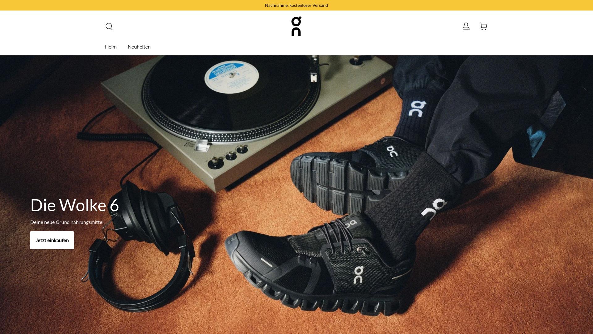Die Webseite bietet eine Auswahl an Produkten aus dem Bereich der Footwear, insbesondere Schuhe. Im Mittelpunkt steht das Modell „Die Wolke 6“, das als neues Produkt beworben wird. Die Seite beschreibt diese Schuhe als eine Art „Grundnahrungsmittel“ für den Alltag und zielt darauf ab, den Nutzern eine bequeme und funktionale Fußbekleidung zu präsentieren. Visuell wird die Seite durch ein ansprechendes Layout unterstützt, wobei große Bilder und ein minimalistisches Design verwendet werden. Im oberen Bereich der Seite befinden sich verschiedene Navigationsmöglichkeiten, wie etwa „Heim“ und „Neuheiten“, die den Nutzern helfen, sich schnell zu orientieren und Neuerscheinungen oder weitere Kategorien zu entdecken. Es gibt auch eine Suchfunktion, die es den Benutzern ermöglicht, gezielt nach Produkten zu suchen. Zusätzlich zu den Schuhen könnte die Seite möglicherweise weitere Artikel und Zubehör präsentieren, die zur Produktlinie gehören oder in Verbindung mit dem Hauptangebot stehen. Eine Option für einen kostenlosen Versand wird ebenfalls erwähnt. Dies könnte darauf hindeuten, dass der Anbieter gewisse Anreize für den Kauf bietet, um die Nutzer zu ermutigen, das Angebot in Anspruch zu nehmen. Die Informationen über die Produkte sind im Allgemeinen klar strukturiert, was es dem Käufer erleichtert, eine informierte Kaufentscheidung zu treffen. Es gibt auch direkte Handlungsaufforderungen wie „Jetzt einkaufen“, die die Nutzer dazu anregen, mehr über die Produkte zu erfahren und eventuell einen Kauf abzuschließen. Die Webseite scheint auf eine aktuelle und modische Zielgruppe abzuzielen, indem sie moderne Designs und einen urbanen Lebensstil thematisiert. Dies wird durch die Verwendung von ansprechenden Bildern, die sowohl Lifestyle-Elemente als auch den praktischen Gebrauch der Schuhe darstellen, untermauert. Insgesamt bietet die Seite einen umfassenden Überblick über das beworbene Produkt und legt Wert auf Benutzererfahrung durch eine klare und einfache Navigation sowie ästhetische visuelle Elemente.