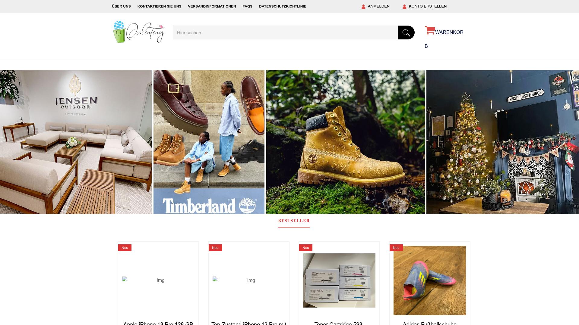 Die Webseite, die auf Hinweishelden gemeldet wurde, präsentiert eine Vielzahl von Produkten, die in verschiedenen Kategorien eingeordnet sind. Auf der Startseite werden unterschiedliche Artikel angezeigt, wobei besonders Schuhe und Elektronik hervorstechen. Unter den Schuhen finden sich Marken wie Timberland und Adidas, die in verschiedenen Styles und Farben verfügbar sind. Das Angebot umfasst sowohl Freizeit- als auch spezielle Outdoor-Schuhe, die für verschiedene Wetterbedingungen geeignet seien. Zusätzlich zur Schuhkategorie wird auch eine Auswahl an elektronischen Geräten angezeigt, darunter Mobiltelefone. Ein Beispiel, das aufgeführt ist, ist das Apple iPhone 13 Pro mit 128 GB Speicherplatz. Dies deutet darauf hin, dass die Seite möglicherweise aktuelle Technologiewaren vertreibt. Darüber hinaus sind auch mehrere Druckerpatronen für unterschiedliche Modelle gelistet, was auf ein breiter gefächertes Sortiment hindeutet, das über Kleidung und Elektronik hinausgeht. Die Artikel sind mit Preisen versehen und es gibt die Möglichkeit, diese in den Warenkorb zu legen, was auf einen Online-Shop hinweist, der eine Kaufplattform für die interessierten Nutzer bietet. Ein Bereich für Kundeninformationen ist ebenfalls vorhanden, wobei häufig gestellte Fragen (FAQs), Versandinformationen und Datenschutzrichtlinien aufgeführt werden. Diese Informationen könnten potenziell für Käufer nützlich sein, um Antworten auf gängige Fragen zu erhalten und sich über die Bedingungen des Einkaufs zu informieren. Die Webseite ist insgesamt übersichtlich gestaltet und ermöglicht den Nutzern anscheinend eine einfache Navigation durch die Produktkategorien. Kategorisierte Darstellungen der Artikel scheinen eine strukturierte Herangehensweise zu fördern, um gesuchte Produkte schnell zu finden. Insgesamt zeigt die Webseite ein breites Produktsortiment, das sowohl Bekleidung als auch Elektronik umfasst. Die Informationen sind klar strukturiert, was den Nutzern helfen kann, ein gewünschtes Produkt zu finden und möglicherweise zu erwerben.