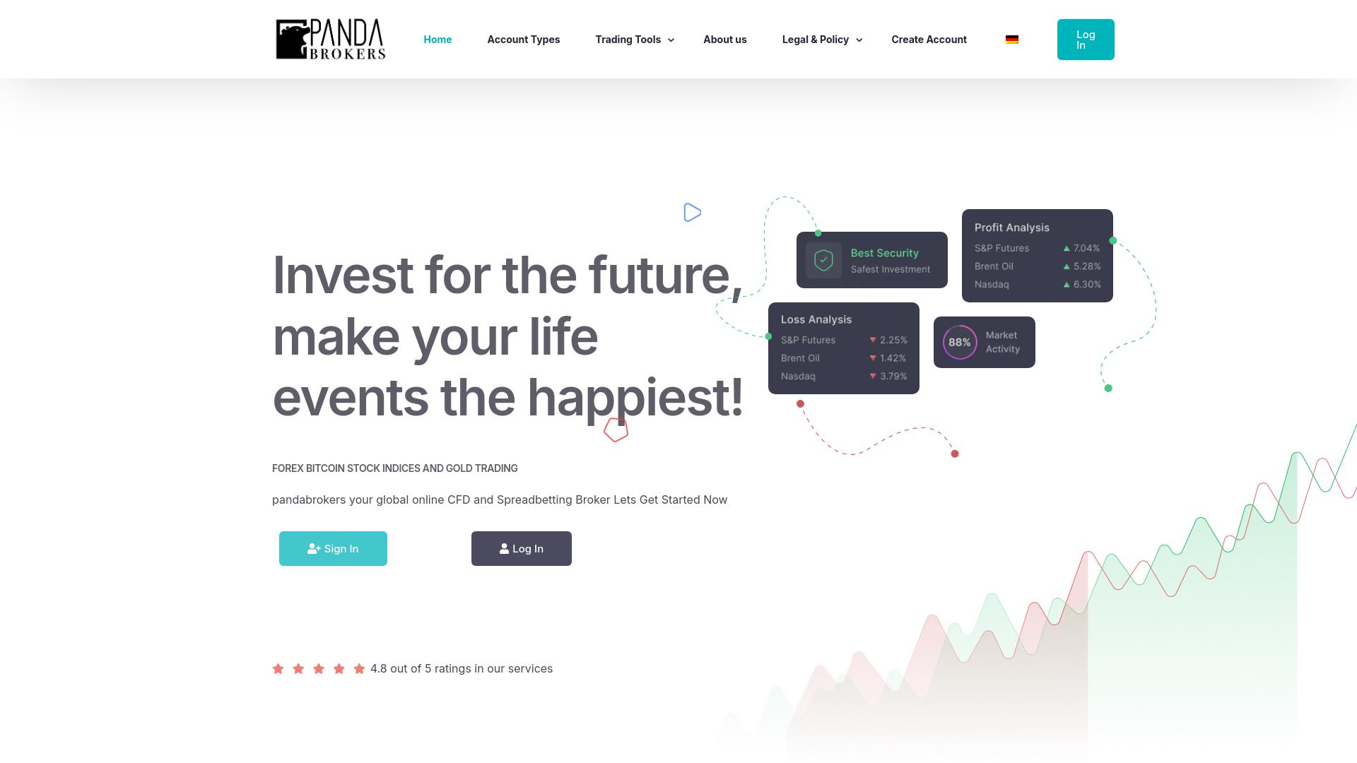 Die Webseite „Panda Brokers“ bietet Dienstleistungen im Bereich des Handels mit Finanzinstrumenten an, insbesondere durch den Handel mit CFDs (Contracts for Difference) und der Möglichkeit des Spread-Bettings. Auf der Webseite werden unterschiedliche Anlageklassen wie Forex, Bitcoin, Aktienindizes und Gold beworben. Besucher der Seite finden verschiedene Informationen zu den angebotenen Handelsmöglichkeiten. Es wird auf die verschiedenen Kontotypen hingewiesen, die den Nutzern zur Verfügung stehen, um den individuellen Bedürfnissen gerecht zu werden. Zudem werden Analysetools erwähnt, die es den Nutzern ermöglichen, Marktanalysen durchzuführen. Der Bereich für die Marktanalyse enthält spezifische Informationen über Verlust- und Gewinnanalysen für Produkte wie S&P Futures, Brent Oil und Nasdaq. Zusätzlich werden auf der Webseite verschiedene statistische Daten angezeigt, darunter eine Kennzahl zur Marktaktivität und spezifische prozentuale Veränderungen für die genannten Finanzinstrumente. Diese Informationen können als Unterstützung für Entscheidungsfindungen beim Handel dienen. Die Webseite bietet zudem Anleitungen zur Kontoerstellung und zum Anmeldeprozess an. Es gibt Optionen für die Anmeldung und den Zugang zu einem Kundenkonto. Abschließend ist zu bemerken, dass auf der Seite auch eine Bewertung von 4,8 von 5 Sternen in Bezug auf die erbrachten Dienstleistungen angezeigt wird. Es wird darauf hingewiesen, dass die Webseite möglicherweise rechtliche und politische Informationen enthält, um die Nutzer über geltende Bestimmungen und Richtlinien im Zusammenhang mit dem Handel zu informieren. Das Angebot dieser Webseite richtet sich an potentielle Nutzer, die an Finanzinvestitionen interessiert sind und die bereit sind, sich mit den damit verbundenen Risiken auseinanderzusetzen.