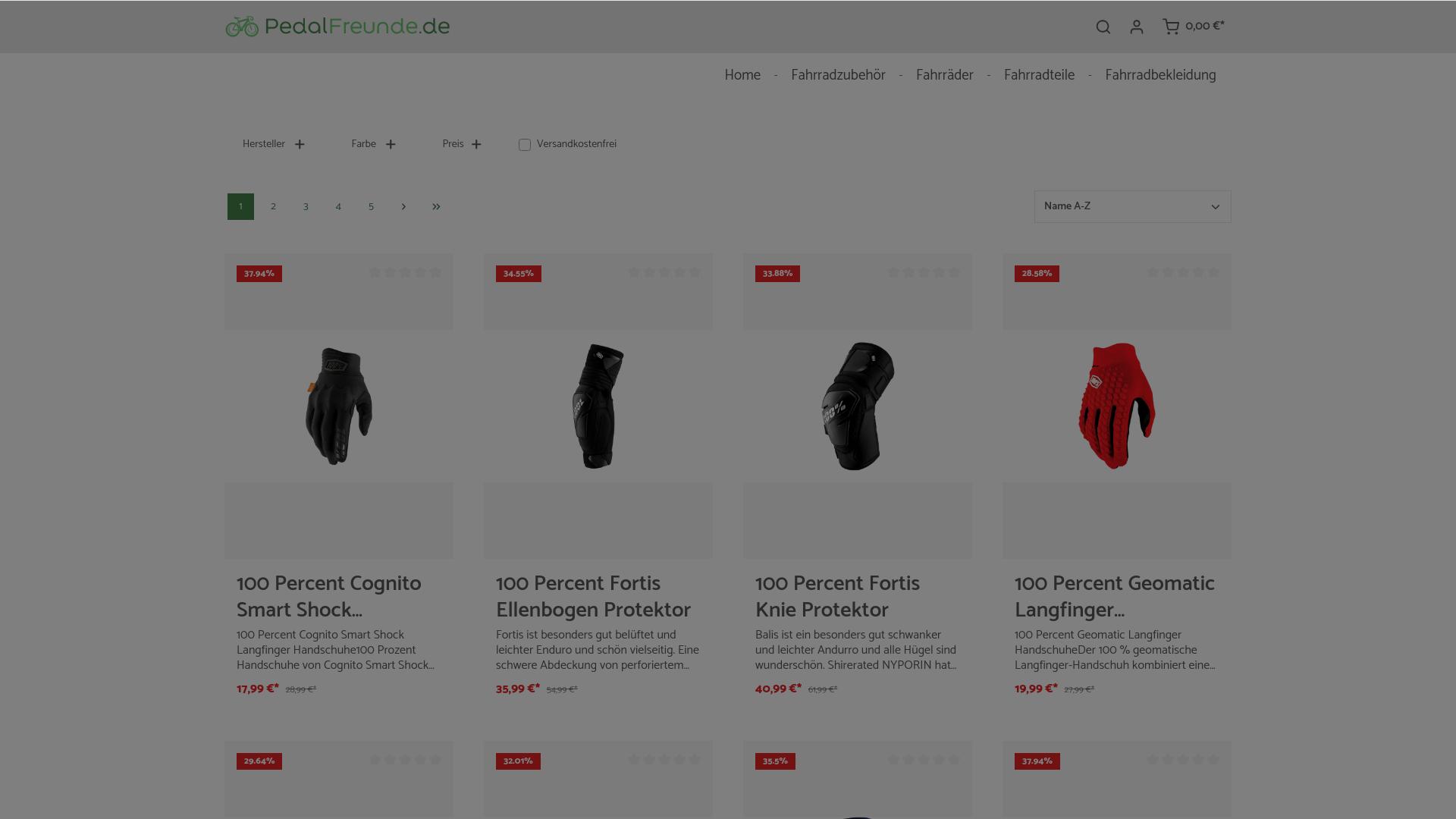 Die Webseite PedalFreunde.de ist eine Online-Plattform, die sich auf den Verkauf von Fahrradzubehör und -kleidung spezialisiert hat. Der Fokus liegt auf einer Vielzahl von Produkten, insbesondere auf Schutzausrüstung und Handschuhen für Fahrradfahrer. Auf der Hauptseite sind unterschiedliche Kategorien zu finden, die eine gezielte Produktauswahl ermöglichen, darunter Informationen zu Herstellern, Farben, Preisen und Versandoptionen. Aktuell werden verschiedene Modelle von Handschuhen präsentiert, darunter die „100 Percent Cognito Smart Shock“ Handschuhe, die für ihre speziellen Eigenschaften beworben werden, sowie Modelle wie die „100 Percent Geomatic Langfinger“ Handschuhe, die ebenfalls auf Funktionalität und Komfort zielen. Diese Produkte befinden sich im Preissegment von rund 17,99 € bis 40,99 €, wobei häufig Rabatte von bis zu 37,94 % angegeben sind. Neben den Handschuhen sind auch Protektoren wie die „100 Percent Fortis Ellenbogen“- und „100 Percent Fortis Knie“-Protektoren im Angebot. Diese Produkte scheinen für den Einsatz im Enduro- und Mountainbike-Bereich konzipiert zu sein und bieten verschiedene Schutzoptionen für die Gelenke der Fahrer. Die Benutzeroberfläche der Webseite ermöglicht eine einfache Navigation, und Nutzer können ihre Produktauswahl durch Filteroptionen verfeinern. Zu den verfügbaren Sortiermöglichkeiten zählt die Anordnung nach Preis und Alphabet. Darüber hinaus wird die Versandkostenfreiheit für bestimmte Produkte hervorgehoben. Die Webseite hat auch einen Warenkorb-Bereich, der es Nutzern ermöglicht, die ausgewählten Artikel vor dem Kauf zu überprüfen. Die Preise werden klar kommuniziert, und es sind sowohl Originalpreise als auch die nach Rabatt geltenden Preise aufgeführt. Interessierte können die Produkte mit einem Klick in ihren Warenkorb legen und den Kaufprozess fortsetzen. Insgesamt bietet PedalFreunde.de eine breite Palette von Fahrradzubehör, fokussiert sich jedoch insbesondere auf Schutzausrüstung für Fahrradfahrer. Das Angebot ist klar strukturiert, ermöglicht eine gezielte Produktauswahl und umfasst sowohl Bekleidung als auch spezifische Teile für Fahrräder.