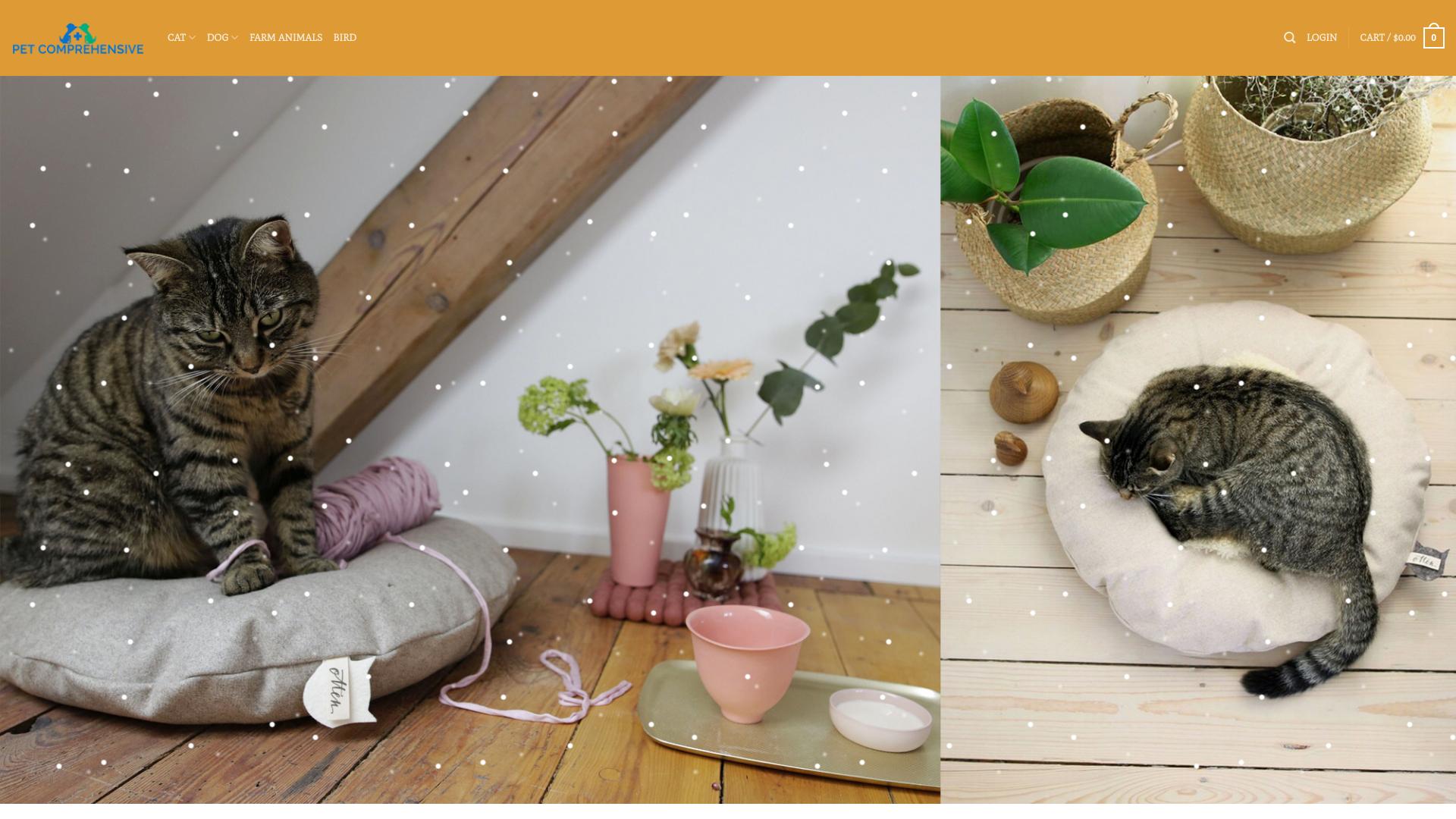 Die Webseite „Pet Comprehensive“ bietet verschiedene Produkte für Haustiere an, insbesondere für Katzen, Hunde und Nutztiere. Die visuelle Gestaltung der Seite umfasst eine Vielzahl von Bildern, die Tiere in verschiedenen Situationen darstellen, wobei der Fokus auf dem Komfort und der Umgebung der Haustiere liegt. Auf der Seite sind verschiedene Kategorien aufgeführt, darunter „Cat“ (Katze), „Dog“ (Hund) und „Farm Animals“ (Nutztiere). Nutzer können durch die angebotenen Produkte navigieren und spezifische Artikel auswählen. Zu den gezeigten Produkten zählen unter anderem Haustierbetten, Futtergeschirr und andere Zubehörteile, die möglicherweise auf den Komfort und das Wohlbefinden von Tieren ausgerichtet sind. Einige der Bilder zeigen Tiere, die auf den Produkten sitzen oder sich darin entspannen, was eine Vorstellung davon vermittelt, wie die Artikel im Alltag genutzt werden könnten. Des Weiteren sind viele der dargestellten Produkte in neutralen, natürlichen Farben gehalten, was einen harmonischen und ansprechenden Eindruck hinterlässt. Die Platzierung von Blumen und anderen Dekorationen in den Bildern könnte darauf hinweisen, dass die Produkte nicht nur funktional, sondern auch ästhetisch gestaltet sind. Die Webseite enthält auch eine einfache Benutzeroberfläche, die es Besuchern ermöglicht, schnell zwischen den verschiedenen Produktkategorien zu wechseln. Suchfunktionen sind verfügbar, um die gezielte Suche nach bestimmten Artikeln zu erleichtern. Zusätzlich ist wahrscheinlich eine virtuelle Warenkorb-Funktion integriert, in der Nutzer ihre ausgewählten Produkte vor dem Kauf überprüfen können. Die Seite weist auch die Möglichkeit auf, sich beim Nutzerkonto anzumelden, was auf örtliche Funktionen wie Bestellhistorie oder spezifische Angebote hinweisen könnte. Die dargestellten Informationen und Angebote vermitteln einen umfassenden Überblick über die verfügbaren Produkte für Haustiere, wobei die Kategorien eine einfache Navigation und eine klare Übersichtlichkeit bieten.
