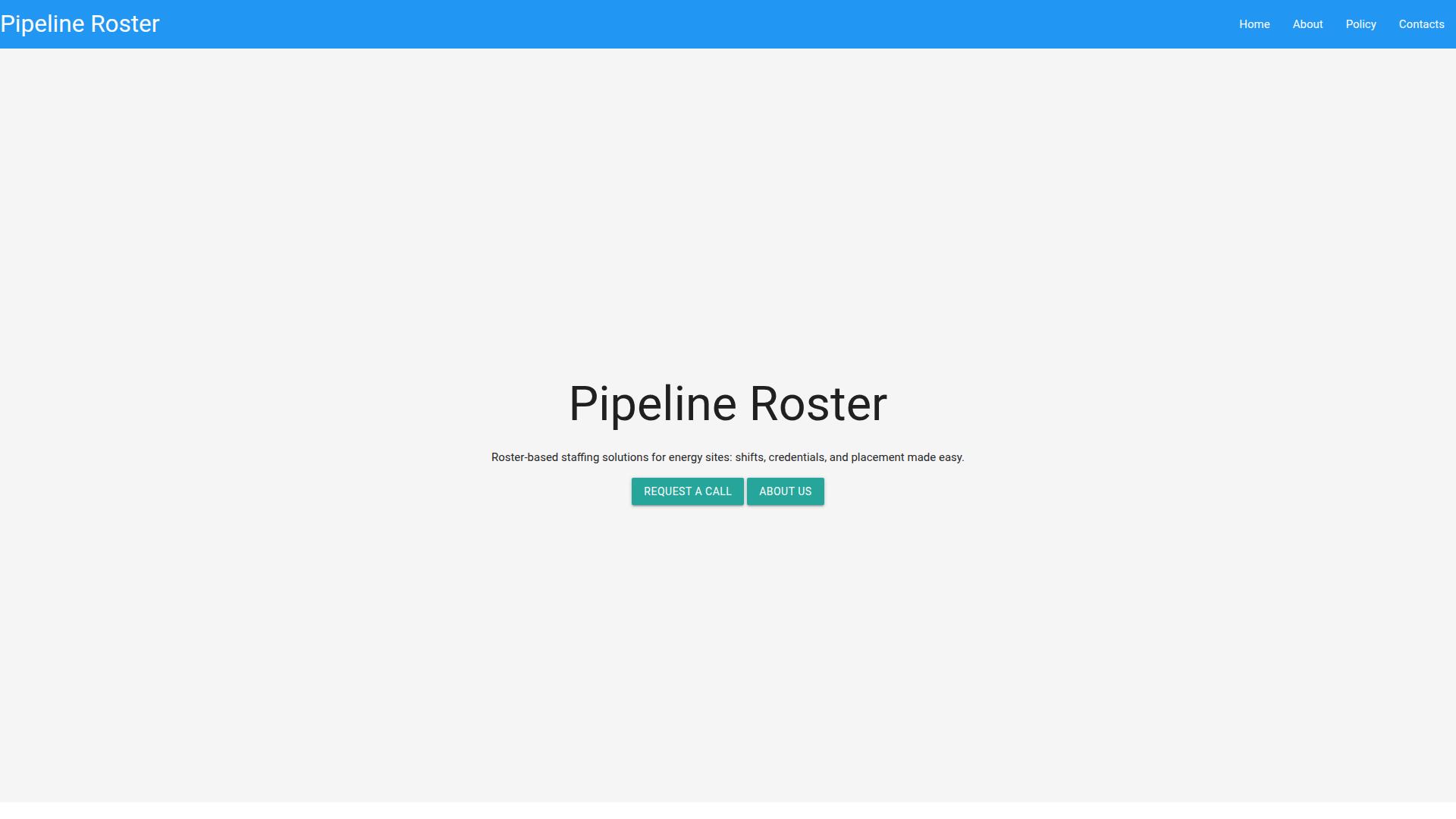 Die Webseite „Pipeline Roster“ bietet staffing Lösungen, die sich spezifisch an Unternehmen in der Energiebranche richten. In der Hauptüberschrift wird auf „Roster-based staffing solutions“ hingewiesen, was darauf schließen lässt, dass die Seite Dienstleistungen im Bereich der Mitarbeiterverwaltung und -platzierung anbietet. Insbesondere werden Aspekte wie Schichtplanung, die Verwaltung von Credentials (Zugangsberechtigungen) und die Platzierung von Personal angesprochen. Zusätzlich beinhaltet die Seite einen Call-to-Action-Button mit der Aufschrift „REQUEST A CALL“, was darauf hindeutet, dass Nutzer hier die Möglichkeit haben, einen Anruf zu soliciteren, um weitere Informationen oder Unterstützung in Bezug auf die angebotenen Dienstleistungen zu erhalten. Dies könnte eine direkte Kommunikationsmöglichkeit zu den Anbietern der Dienstleistungen signalisieren. Ein weiterer Button mit der Bezeichnung „ABOUT US“ könnte darauf hindeuten, dass Benutzer die Möglichkeit haben, mehr über das Unternehmen, seine Mission sowie seine Werte zu erfahren. Diese Informationen sind typischerweise wichtig, um einen besseres Verständnis über die Hintergründe der Organisation und ihre Fachgebiete zu erhalten. Die Seite ist in einem klaren und minimalistischen Design gehalten, welches den Fokus auf die angebotenen Dienstleistungen legt. Es werden keine zusätzlichen Informationen zu Preisen, speziellen Angeboten oder anderen Dienstleistungen auf der Hauptseite bereitgestellt. Dies könnte darauf hindeuten, dass detaillierte Informationen erst nach einer Kontaktaufnahme zur Verfügung stehen. Es gibt keine sichtbaren Kundenbewertungen, Testimonials oder spezifischen Fallstudien auf der Hauptseite, die Nutzer bei ihrer Entscheidung hilfreich sein könnten. Die Gestaltung der Webseite scheint darauf ausgelegt zu sein, die Benutzerfreundlichkeit zu fördern und eine einfache Navigation zu gewährleisten. Die Informationen auf der Seite sind relativ knapp gehalten und konzentrieren sich auf die wesentlichen Merkmale der angebotenen Dienstleistungen. Zusammenfassend lässt sich sagen, dass die Webseite „Pipeline Roster“ eine Plattform für staffing Lösungen in der Energiebranche darstellt und den Nutzern anbietet, sich über deren Dienstleistungen zu informieren und direkt Kontakt aufzunehmen.