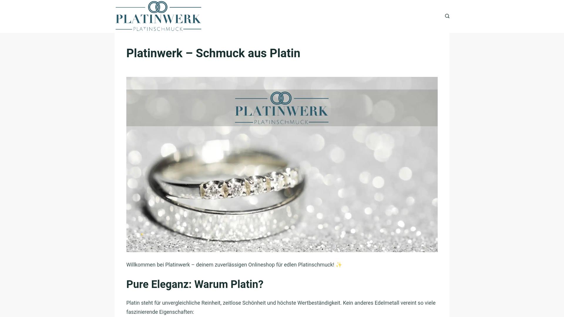 Die Webseite „Platinwerk“ ist ein Online-Shop, der auf den Verkauf von Schmuck aus Platin spezialisiert ist. Auf der Plattform wird eine Vielzahl von Produkten präsentiert, die in unterschiedlichen Kategorien eingeteilt sind. Das Angebot umfasst unter anderem Ringe, Ketten und Ohrringe, die aus Platin gefertigt sind. Die Seite bietet Informationen über die besonderen Eigenschaften von Platin als Material an, einschließlich seiner Reinheit und Langlebigkeit. Es wird auf die Anziehungskraft von Platin in der Schmuckherstellung verwiesen und darauf, dass Platinoberflächen keine Anzeichen von Abnutzung zeigen, was es zu einer bevorzugten Wahl für langlebigen Schmuck macht. Zusätzlich enthält die Webseite eine Einleitung, die die Besucher willkommen heißt und die Einzigartigkeit des Platin-Schmucks hervorhebt. Es gibt auch Abschnitte, die sich mit den Vorteilen von Platin im Vergleich zu anderen Edelmetallen befassen. Der Fokus liegt hierbei auf Aspekten wie der zeitlosen Schönheit und dem hohen Wert des Materials. Die Navigation der Webseite scheint benutzerfreundlich gestaltet zu sein, was es den Nutzern erleichtert, die verschiedenen angebotenen Produkte zu durchsuchen. Es gibt auch Bildmaterial, das die Schmuckstücke ansprechend darstellt. Informationen über Materialqualität und Verarbeitungsdetails werden ebenfalls bereitgestellt, um den Besuchern ein umfassendes Bild des Angebots zu vermitteln. Zusammengefasst bietet „Platinwerk“ eine Plattform für den Erwerb von Platin-Schmuck mit detaillierten Informationen zu den Vorteilen und Eigenschaften des Materials. Die Webseite hat ein klares Layout, das den Zugang zu den Inhalt und Produkten erleichtert.