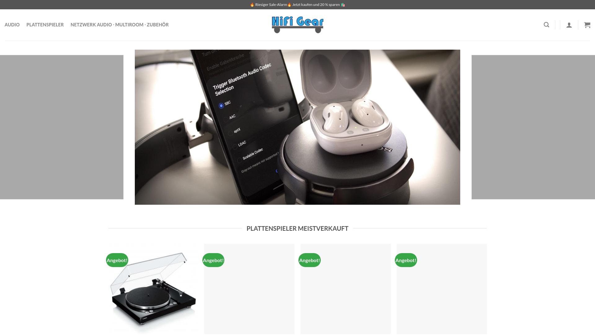 Die Webseite „HiFi Gear“ bietet eine Auswahl an Audioprodukten und Zubehör an. Im Fokus stehen verschiedene Geräte, die sowohl für den Heimgebrauch als auch für den professionellen Bereich konzipiert sind. Auf der Plattform werden insbesondere Plattenspieler, kabellose Kopfhörer sowie Netzwerk-Audiosysteme vorgestellt. Im oberen Bereich der Webseite sind Bilder zahlreicher Produkte zu sehen, darunter kabellose Ohrhörer, die auf einem Ladeteller positioniert sind. Diese Ohrhörer scheinen moderne Bluetooth Technologien zu unterstützen, was durch die Darstellung der Auswahl verschiedener Audio-Codecs auf einem Smartphone suggeriert wird. Die Anzeige umfasst Optionen wie SBC, AAC, aptX, LDAC und Scalable Codec, was darauf hindeutet, dass die Geräte möglicherweise eine Vielzahl an Audioformaten verarbeiten können. Ein weiterer wichtiger Bestandteil der Webseite ist der Segmentbereich für Plattenspieler. Unter dem Punkt „Plattenspieler Meistverkauft“ werden verschiedene Modelle angezeigt, die in unterschiedlichen Varianten und Ausführungen erhältlich sind. Die Geräte werden als „Angebot“ markiert, was darauf hinweist, dass es möglicherweise Sonderaktionen oder zeitlich begrenzte Preisnachlässe gibt. Zusätzlich zur Produktauswahl könnte die Webseite weiterführende Informationen zu den technischen Spezifikationen, Bewertungen, Einsatzmöglichkeiten und möglicherweise auch Zubehör für die erworbenen Produkte bereitstellen. Es können Hinweise zum Kaufprozess, Zahlungsarten sowie zu den Versandoptionen gegeben sein. Die Navigation der Webseite scheint klar strukturiert zu sein, mit verschiedenen Kategorien, die dem Nutzer helfen, gezielt nach bestimmten Produkttypen zu suchen. Es ist anzunehmen, dass es auch eine Suchfunktion gibt, die eine direkte Produktsuche ermöglicht. Insgesamt bietet die Webseite „HiFi Gear“ eine Plattform, auf der Interessierte verschiedene Audio-Produkte finden und eventuell erwerben können. Die genauen Preise, Produktverfügbarkeiten sowie spezielle Angebote sind jedoch nicht direkt ersichtlich und könnten je nach Angebot variieren.