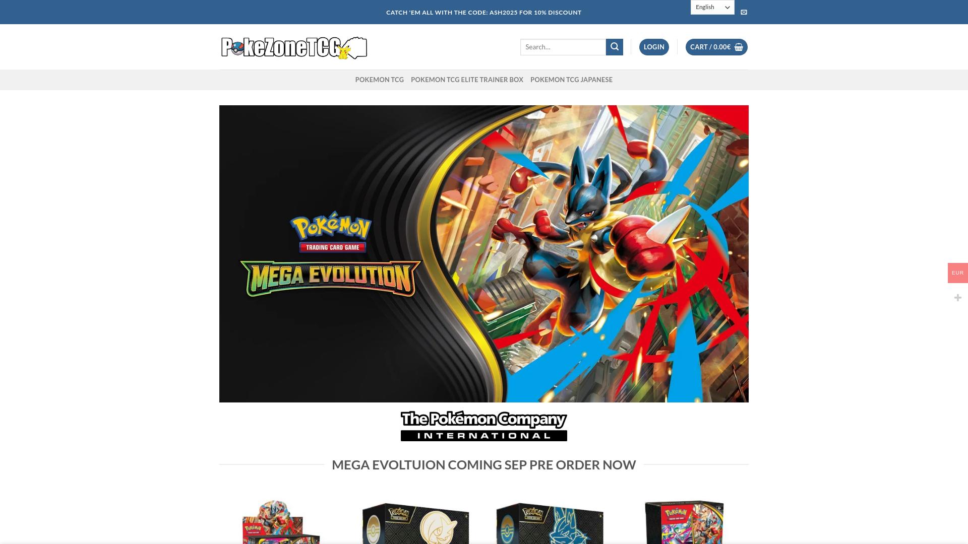 Die Webseite „PokeZoneTCC“ bietet Produkte im Zusammenhang mit dem Pokémon Trading Card Game an. Im Vordergrund stehen die Vorbestellungen für die Produktlinie „Mega Evolution“, die im kommenden September verfügbar sein soll. Die Seite enthält Informationen, die auf die Pokémon-Charaktere und deren Abbildungen abzielen, um das Interesse an den Handelskarten zu fördern. Unter dem Hauptbanner, der visuelle Elemente und Tweets zu Mega Evolution zeigt, können die Nutzer verschiedene Produkte finden, die angeboten werden. Dazu zählen „Elite Trainer Boxes“ und andere Sammelprodukte des Pokémon Trading Card Games. Die Darstellung dieser Produkte erfolgt häufig mit Referenzen auf bestimmte Pokémon, deren Designs und Spielstrategien. Das Menü der Webseite umfasst Kategorien wie „Pokémon TCG“ sowie spezifische Links zu „Pokémon TCG Elite Trainer Box“ und „Pokémon TCG Japanese“, was auf eine mögliche Vielfalt an Produkten hinweist, die sowohl internationale als auch japanische Karten und Boxen umfassen. Ein Login-Bereich ist ebenfalls vorhanden, was darauf hindeutet, dass Nutzer ein Konto anlegen könnten, um Bestellungen oder Spielstatistiken zu verfolgen. Ein Warenkorb-System ist integriert, um die Auswahl der Produkte zu erleichtern. Die Webseite weist außerdem auf einen Rabattcode hin, der Käufern einen Preisnachlass von 10 % gewährt, was eine häufige Marketingstrategie im E-Commerce darstellt. Ende der Seite oder in den Fußzeilen finden sich möglicherweise zusätzliche rechtliche Informationen oder Kontaktmöglichkeiten für Kunden, um weitere Fragen zu klären oder Unterstützung zu erhalten. Diese Features sind typischerweise charakteristisch für Online-Shops, die darauf abzielen, den Nutzern eine einfache Navigation und ein komfortables Einkaufserlebnis zu bieten. Die Gesamtdarstellung der Webseite folgt einem ansprechenden Design, das sich an Fans des Pokémon-Universums richtet und gezielt auf dessen Produkte fokussiert ist. Je nach Verfügbarkeit können unterschiedliche Sammelkarten und Zubehörteile durchsuchbar sein, wobei der Schwerpunkt auf Produkte gelegt wird, die im Zusammenhang mit aktuellen Trends und Veröffentlichungen im Pokémon Trading Card Game stehen.