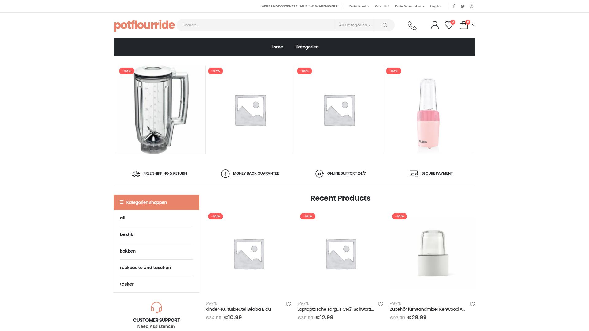 Die Webseite potflourride bietet eine Auswahl an Produkten, die hauptsächlich in den Kategorien Küche, Rucksäcke und Taschen sowie allgemeines Zubehör eingeordnet sind. Auf der Startseite sind verschiedene Produkte mit deutlichen Preisnachlässen angezeigt, einschließlich eines Mixers, Kulturtaschen und Laptoptaschen. Die Produkte sind mit Prozentangaben versehen, die auf signifikante Preisreduzierungen hinweisen, die bis zu 69 % betragen können. Beispielsweise wird ein Mixer zu einem reduzierten Preis angeboten, mit einem angegebenen Rabatt von 68 % im Vergleich zu einem vorherigen Preis. Die Kulturtasche und die Laptoptasche sind ebenfalls mit entsprechenden Preisnachlässen versehen, was darauf hindeutet, dass Rabatte möglicherweise bei vielen der gelisteten Artikel angeboten werden. Die Webseite hebt einige Dienstleistungen hervor, darunter kostenlosen Versand und Rückgabeabwicklung, sowie eine Geld-zurück-Garantie. Zusätzlich wird die Verfügbarkeit eines 24/7 Online-Supports erwähnt, der Nutzern bei Fragen oder Anliegen helfen soll. Die Benutzeroberfläche der Seite ist übersichtlich gestaltet und ermöglicht das einfache Navigieren durch die Produktkategorien. Besondere Kategorien umfassen „bestik“ (besteck), „kokken“ (Küche), „rucksacke und taschen“ (Rucksäcke und Taschen) sowie „tasker“ (Taschen). Diese Kategorisierung könnte Besuchern helfen, gezielt nach bestimmten Artikeln zu suchen. Die Seite bietet eine Kontaktmöglichkeit und ermöglicht Benutzern, sich in ihr Konto einzuloggen oder einen Warenkorb zu verwalten. Zahlungsmethoden werden als sicher beschrieben, jedoch wurden keine spezifischen Zahlungsmethoden direkt auf der Hauptseite genannt. Insgesamt präsentiert die Webseite eine Vielzahl von Produkten, die für Verbraucher in verschiedenen Kategorien gedacht sind, und betont unterschiedliche Kaufanreize wie rabattes und zusätzliche Dienstleistungen. Diese Merkmale könnten Nutzer interessieren, die nach günstigen Angeboten suchen.