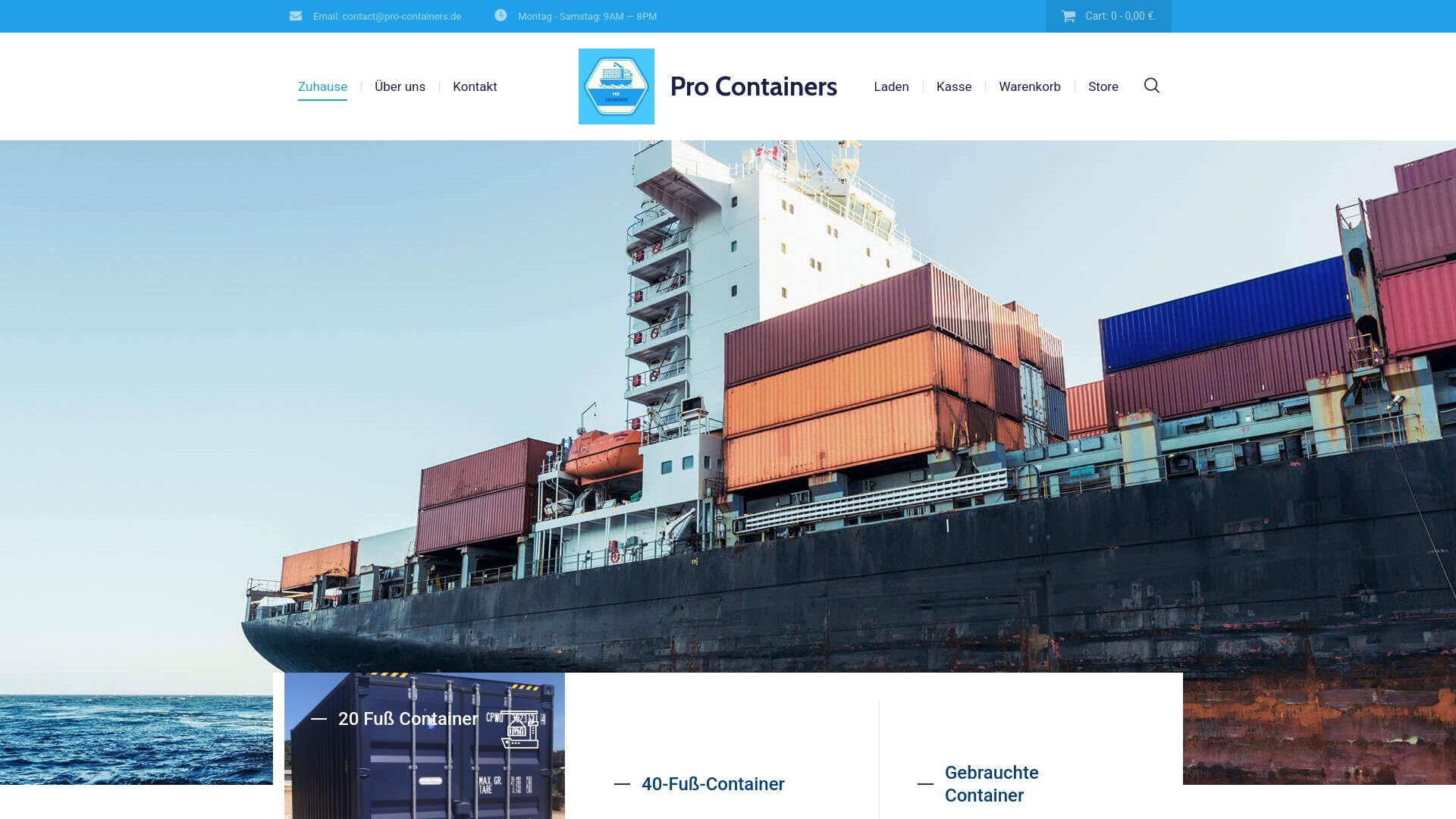 Die Webseite „Pro Containers“ bietet eine Auswahl von Containern zum Kauf an. Zu den verfügbaren Produkten gehören 20-Fuß-Container und 40-Fuß-Container, sowie gebrauchte Container. Die Website scheint darauf ausgerichtet zu sein, potenziellen Käufern Informationen über die verschiedenen Containergrößen und -typen bereitzustellen. Im oberen Bereich der Webseite befindet sich eine Hauptnavigation, die dem Nutzer die Möglichkeit bietet, zwischen verschiedenen Kategorien wie „Über uns“, „Kontakt“, „Warenkorb“ und einem „Store“ zu navigieren. Der Bereich „Über uns“ könnte weitere Informationen über das Unternehmen und seine Dienstleistungen enthalten, während der „Kontakt“-Bereich dazu dient, mit dem Anbieter in Verbindung zu treten. Die Startseite zeigt ansprechende Bilder von Containern, die auf einem Schiffsdeck gestapelt sind, um ein integratives visuelles Erlebnis zu schaffen. Neben den Produktbezeichnungen werden vermutlich auch Preise, Details zum Zustand der Container und ihre Verfügbarkeit aufgeführt. Die Webseite enthält möglicherweise auch zusätzliche Informationen darüber, wie die Container verwendet oder transportiert werden können, und bietet Hinweise zur Auswahl des passenden Containers für die individuellen Bedürfnisse der Kunden. Zudem gibt es eine Warenkorbfunktion, die es Nutzern ermöglichen sollte, ihre Auswahl zu verwalten, bevor sie zur Kasse gehen. Die Webseite spricht anscheinend eine Zielgruppe an, die Container für verschiedene Verwendungszwecke benötigt, wie z.B. für Transporte, Lagerung oder andere logistische Anwendungen. Die Webseite ist darauf ausgelegt, eine benutzerfreundliche Erfahrung zu bieten, sodass Interessenten leicht durch die angebotenen Produkte navigieren und Informationen zu ihrem Kauf finden können. Die genannten Dienstleistungen und Produkte legen den Fokus auf die Bedürfnisse von Geschäftskunden und Privatpersonen, die Container für unterschiedliche Projekte suchen. Insgesamt bietet „Pro Containers“ umfassende Informationen über Container und sollte potenzielle Käufer durch ein strukturiertes Layout und klare Produktkategorisierungen ansprechen.