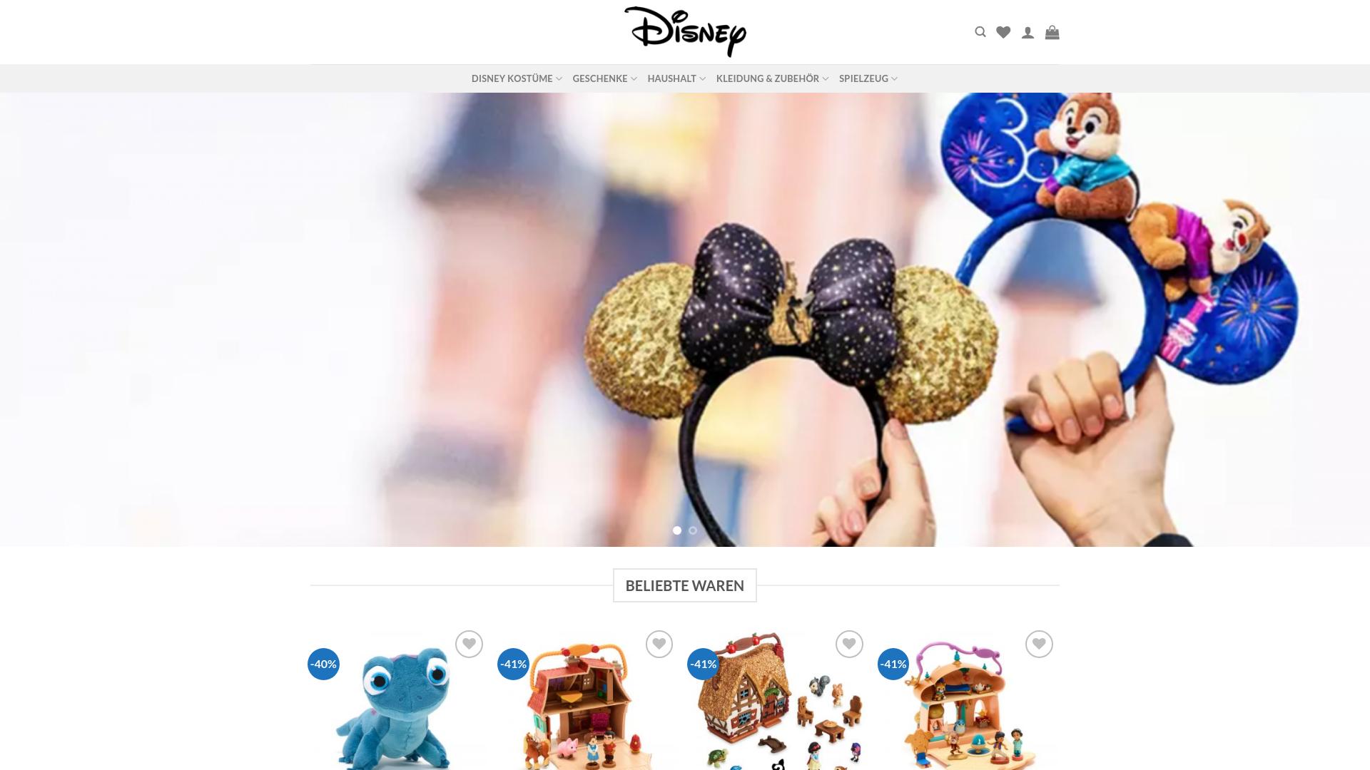 Die Webseite bietet Produkte in Verbindung mit Disney-Themen an, darunter eine Auswahl an Roben, Spielzeugen und anderen Artikeln, die mit bekannten Disney-Figuren und -Filmen assoziiert sind. Die Startseite präsentiert verschiedene Kategorien wie Disney Kostüme, Geschenke, Haushaltswaren, Kleidung, Zubehör und Spielzeug. Unter der Rubrik „Beliebte Waren“ sind diverse Artikel aufgelistet, die visuell ansprechend gestaltet sind. Dazu gehören unter anderem Plüschtiere, Spielsets und dekorative Elemente, die anscheinend auf verschiedene Disney-Inhalte Bezug nehmen. Die Seitenstruktur ermöglicht eine einfache Navigation durch die Produktkategorien, und es sind Preisangaben zu finden, die Rabattinformationen hervorheben. Zusätzlich können Käufer durch die Kategorien stöbern, die speziell auf unterschiedliche Interessen und Altersgruppen ausgerichtet sind. Bekannte Disney-Charaktere und -Themen scheinen im Mittelpunkt der Produktangebote zu stehen, was eine Vielfalt von Optionen für Fans und Sammler bieten könnte. Die Seite zielt darauf ab, sowohl für junge Kinder als auch für Erwachsene ansprechende Produkte anzubieten, die Disney-Fans ansprechen. Die Webseite scheint zusätzlich Informationen über die Verfügbarkeit von Artikeln und gegebenenfalls Lieferoptionen bereit zu stellen. Besucher können durch das Angebot navigieren, um spezifische Produkte zu finden, und die Produktseiten scheinen detaillierte Beschreibungen sowie Bilder der Artikel zu enthalten. Insgesamt fokussiert sich die Webseite auf den Vertrieb von Merchandise und themenbezogenen Artikeln, die Ihnen helfen, eine Verbindung zu ihren LieblingsDisney-Charakteren und -Geschichten herzustellen. Enthalten sind Produkte für feierliche Anlässe, Alltagsnutzung oder als Sammlerstücke, was eine breite Palette von möglichen Käufen für unterschiedliche Bedürfnisse ermöglicht.
