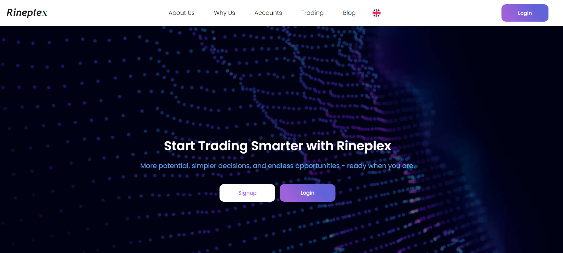 Die Webseite „Rineplex“ bietet eine Plattform für den Handel mit verschiedenen Finanzinstrumenten. Auf der Startseite wird Nutzern die Möglichkeit gegeben, direkt mit dem Handel zu beginnen, indem sie zwischen den Optionen „Signup“ und „Login“ wählen können. Der Slogan der Seite heißt: „Start Trading Smarter with Rineplex“, was darauf hinweist, dass die Plattform den Nutzern beim Handel verschiedene Strategien und Ansätze bieten möchte. Die Webseite enthält Bereiche wie „About Us“, „Why Us“, „Accounts“, „Trading“ und „Blog“, die potenziell detailliertere Informationen über das Unternehmen, die angebotenen Dienstleistungen sowie die Handelsbedingungen bereitstellen könnten. Dies deutet darauf hin, dass die Plattform möglicherweise eine breite Palette von Finanzprodukten oder -dienstleistungen anbietet, um Nutzern beim Handel zu helfen. Die Aussage auf der Startseite, dass es „mehr Potenzial, einfachere Entscheidungen und endlose Möglichkeiten“ bietet, könnte darauf hinweisen, dass die Plattform Tools oder Ressourcen zur Verfügung stellt, die Nutzer bei ihren Handelsentscheidungen unterstützen sollen. Im Abschnitt „Accounts“ könnten verschiedene Kontomodelle vorgestellt werden, die möglicherweise unterschiedliche Funktionen oder Vorteile bieten, um auf die Bedürfnisse unterschiedlich erfahrener Trader einzugehen. Die Nutzung der englischen Sprache und die Struktur der Webseite könnten darauf hindeuten, dass sie international ausgerichtet ist und möglicherweise ein breites Publikum ansprechen möchte. Die Seite ist visuell ansprechend gestaltet, mit einem modernen Design, das auf Dynamik und Technologie hinweisen könnte. Zusammenfassend lässt sich sagen, dass Rineplex eine Handelsplattform ist, die Nutzern verschiedene Funktionen und Möglichkeiten im Bereich des Handels bietet, jedoch keine spezifischen Informationen zu den Handelsinstrumenten, Gebühren oder der rechtlichen Grundlage auf der Startseite zur Verfügung stellt. Eine detaillierte Betrachtung der weiteren Abschnitte der Webseite könnte notwendig sein, um umfassendere Informationen über die angebotenen Dienstleistungen und deren Bedingungen zu erhalten.