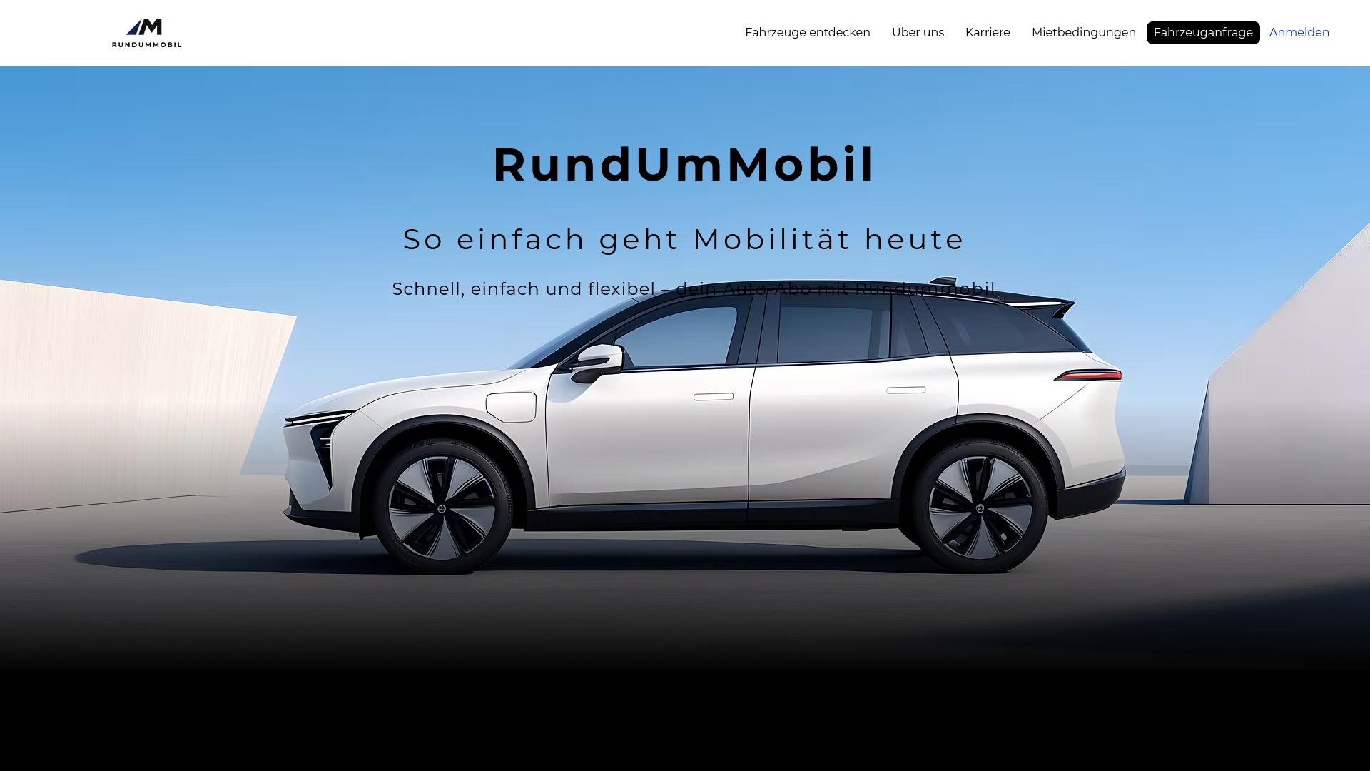 Die Webseite „RundUmMobil“ bietet Nutzerinformationen zu einem Fahrzeug-Abonnement-Service an. Der Schwerpunkt liegt auf einer flexiblen Mobilitätslösung, die eine Alternative zum klassischen Autobesitz darstellt. Die Plattform scheint darauf ausgelegt zu sein, die Nutzer durch einen unkomplizierten Zugang zu verschiedenen Fahrzeugmodellen zu unterstützen. Auf der Startseite wird ein Auto abgebildet und es wird hervorgehoben, dass unterwegs eine einfache und schnelle Mobilität ermöglicht werden soll. Die Webseite enthält Informationen zu verschiedenen Fahrzeugen, die im Rahmen des Abonnements erhältlich sind. Nutzer haben die Möglichkeit, unterschiedliche Modelle zu entdecken und die für sie passende Lösung auszuwählen. Zusätzlich bietet die Seite Hinweise zu den Mietbedingungen für die Fahrzeuge an. Diese Informationen umfassen möglicherweise Details zu den Kosten, Vertragszeiten und zur Verfügbarkeit der Autos. Es wird darauf hingewiesen, dass Nutzer einen einfachen Prozess zur Anmietung in Anspruch nehmen können, der verschiedene Aspekte der Fahrzeugnutzung abdecken könnte. Die Webseite gibt auch Einblicke in die Unternehmenskultur und mögliche Karrierechancen im Bereich des Unternehmens, was darauf hindeutet, dass RundUmMobil möglicherweise ein breiteres Spektrum an Dienstleistungen anbietet als nur Fahrzeugabonnements. Das Design der Webseite wirkt modern und ansprechend, trifft visuelle Akzente durch großformatige Bilder und klare Schriftzüge. Eine Navigationsleiste ermöglicht den Nutzern Zugang zu weiteren Bereichen der Webseite, darunter Informationen zum Unternehmen, den Mietbedingungen und die Fahrzeuganfrage. Zusammenfassend beschreibt die Webseite RundUmMobil einen Service, der Nutzern eine flexible Nutzung von Fahrzeugen über ein Abonnement-Modell anbietet und weitere Informationen zu den Konditionen und verfügbaren Fahrzeugtypen bereitstellt.