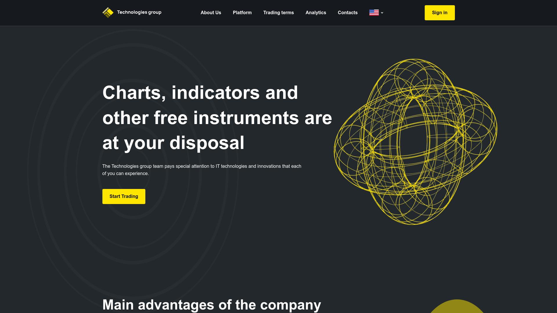 Die Webseite „Technologies group“ bietet eine Plattform, die insbesondere für den Handel konzipiert ist. Sie hebt verschiedene Funktionen und Angebote hervor, die den Nutzern zur Verfügung stehen. Auf der Startseite wird erwähnt, dass Charts, Indikatoren und andere kostenlose Handelswerkzeuge verfügbar sind. Dies deutet darauf hin, dass die Seite sich an Nutzer richtet, die im Bereich des Handels tätig sind oder Informationen und Analysen zu Finanzmärkten suchen. Zusätzlich wird klar, dass das Team der Webseite einen besonderen Fokus auf IT-Technologien und Innovationen legt. Dies könnte darauf hinweisen, dass die angebotenen Tools und Funktionen möglicherweise moderne Technologien verwenden, um den Handelsprozess zu unterstützen. Ein Button mit der Aufschrift „Start Trading“ lädt die Nutzer ein, sich zu registrieren oder die Plattform zu nutzen, um mit dem Handel zu beginnen. In der Navigation der Webseite findet sich ein Menü mit Optionen wie „About Us“, „Platform“, „Trading terms“, „Analytics“ und „Contacts“. Diese Kategorien könnten den Nutzern eine Vielzahl von Informationen bieten, angefangen bei den Bedingungen für den Handel bis hin zu analytischen Werkzeugen und der Kontaktaufnahme mit dem Support. Die Nutzung von auffälligen Grafiken, wie die dargestellten gelben Linien, könnte auf eine visuell ansprechende Darstellungsweise der Inhalte hinweisen. Es ist möglich, dass solche visuelle Elemente dazu dienen, die Aufmerksamkeit der Nutzer auf bestimmte Aspekte der Webseite zu lenken oder die Nutzung der Tools zu unterstützen. Zusammenfassend lässt sich sagen, dass die Webseite „Technologies group“ eine einladende Plattform für Nutzer bietet, die an Handelsaktivitäten interessiert sind. Die bereitgestellten Werkzeuge und Informationen könnten darauf abzielen, den Nutzern eine fundierte Grundlage für ihre Handelsentscheidungen zu bieten. Es bleibt abzuwarten, welche spezifischen Angebote in den verschiedenen Kategorien weiter ausgeführt werden.