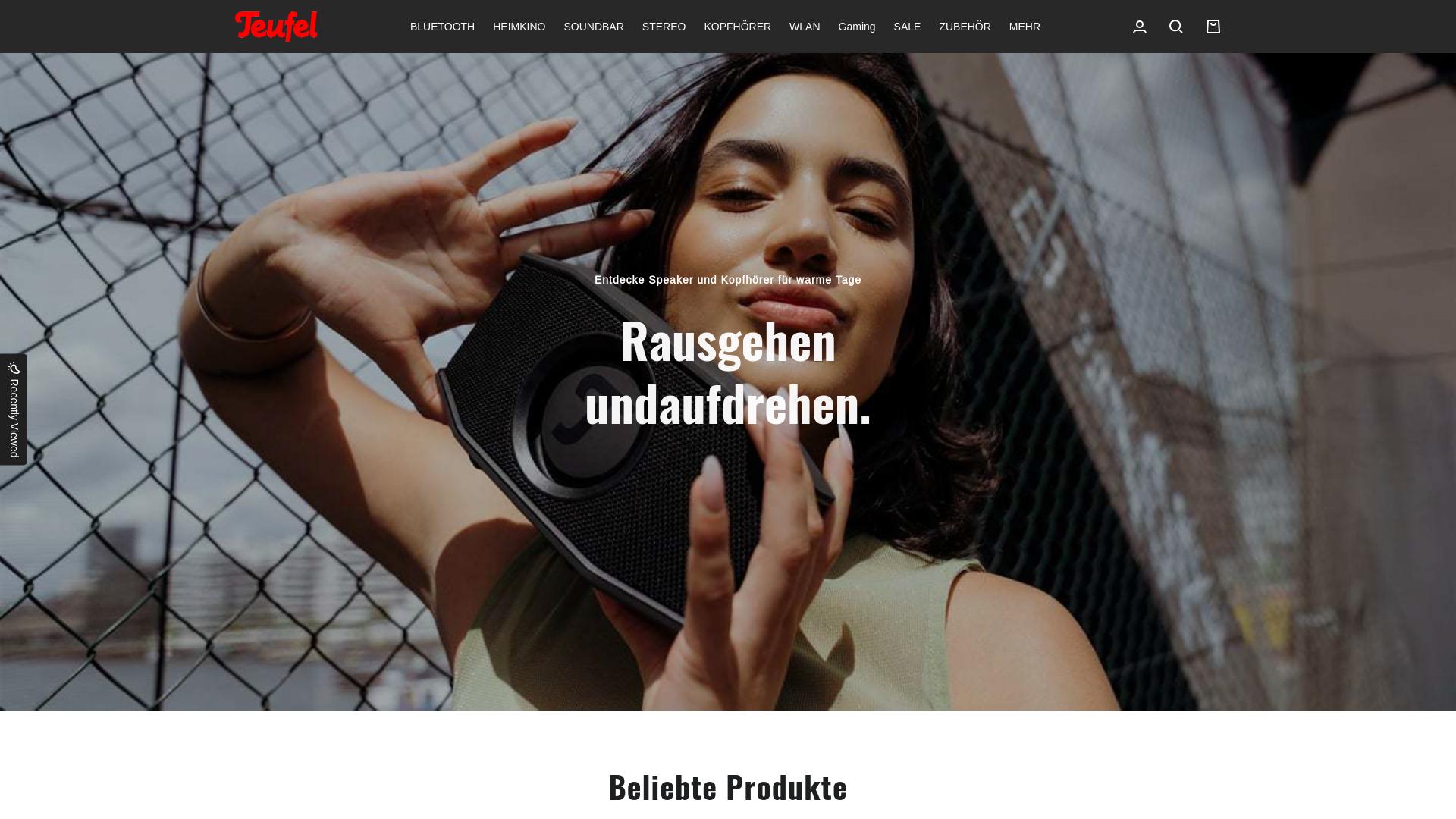 Die Webseite, die in dem Screenshot dargestellt wird, bietet eine Produktpalette von Audiogeräten an, darunter tragbare Lautsprecher und Kopfhörer. Die Seite ist darauf ausgelegt, Nutzer zur Erkundung ihrer Produkte zu animieren, insbesondere für den Einsatz im Freien. Auf der Startseite wird das Hauptaugenmerk auf das Reisen und die Nutzung von Audioprodukten in verschiedenen Umgebungen gelegt. Die visuelle Darstellung zeigt eine Person, die einen tragbaren Lautsprecher hält, was darauf hindeutet, dass die angebotenen Produkte mobil und benutzerfreundlich sein sollen. Unter der Überschrift wird ein Slogan präsentiert, der das Thema der Nutzung im Freien anspricht. Die Navigation auf der Webseite ist klar strukturiert und umfasst verschiedene Kategorien wie Bluetooth, Heimkino, Soundbar, Stereo, Kopfhörer und Zubehör. Diese Kategorien ermöglichen es den Nutzern, schnell die gewünschten Produkte zu finden. Zusätzlich wird eine Sektion für beliebte Produkte hervorgehoben. Diese könnte eine Auswahl der am häufigsten gekauften oder angesehenen Artikel enthalten, um den Nutzern zu zeigen, welche Produkte möglicherweise von Interesse sind. Es ist zu vermuten, dass in dieser Rubrik große Vielfalt und verschiedene Preisklassen vertreten sind, um eine breite Zielgruppe anzusprechen. Die Seite könnte auch spezielle Angebote oder einen Bereich für saisonale Rabatte enthalten, was auf eine Strategie hinweist, um Kundenkaufanreize zu bieten. In diesem Zusammenhang könnte es auch eine Sektion für Neuheiten geben, die den Nutzern die neuesten Produkte oder Technologien vorstellen. Generell scheint die Webseite den Nutzern ein ansprechendes Online-Einkaufserlebnis zu bieten, wobei der Fokus auf der Präsentation von Produkten und deren Funktionen liegt. Die Nutzer können von dieser Plattform profitieren, um Informationen über Audioprodukte zu sammeln und möglicherweise Käufe zu tätigen.