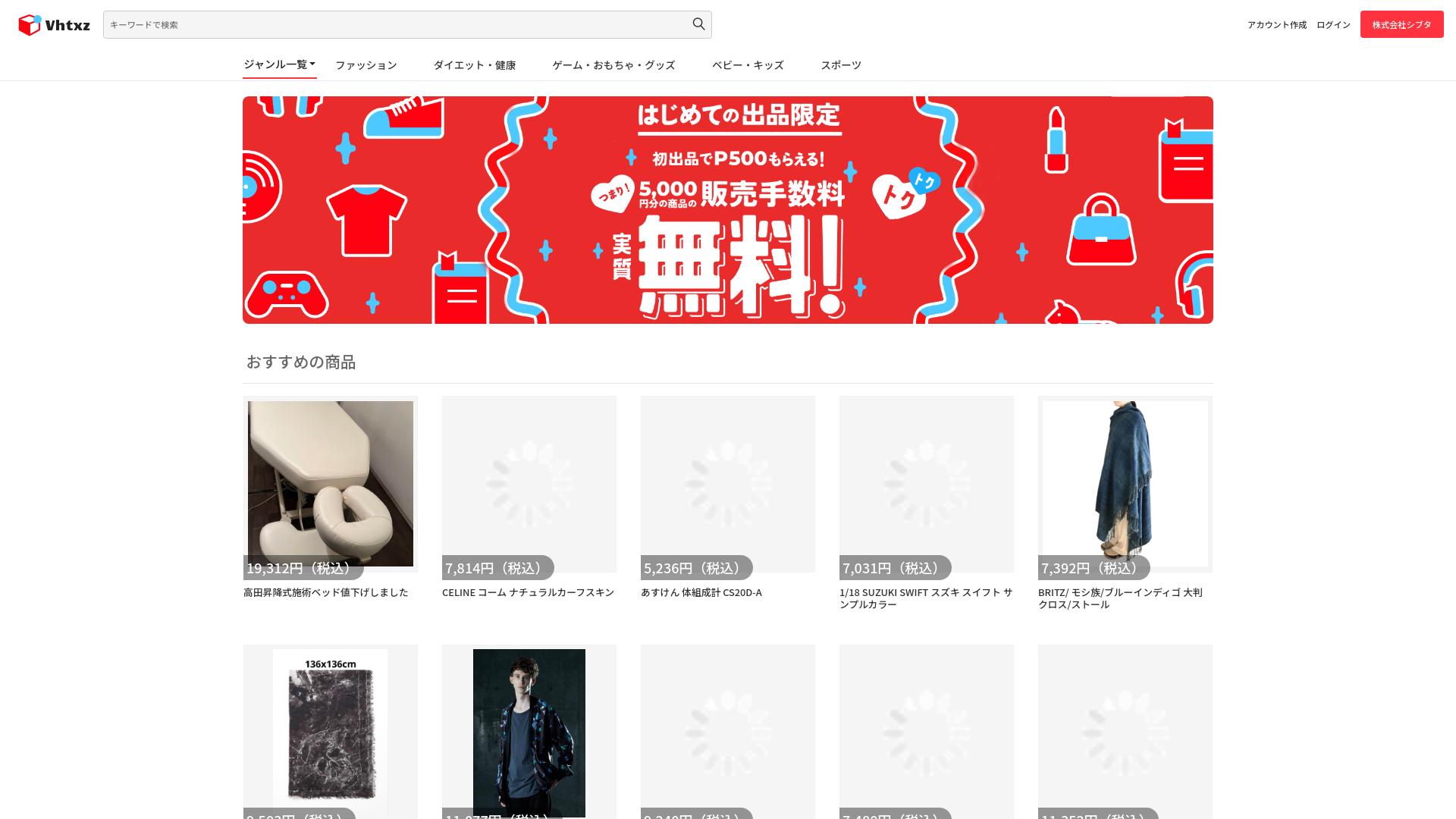 Die Webseite Vhtxz bietet eine Vielzahl von Produkten in unterschiedlichen Kategorien an, darunter Mode, Gesundheit, Sport und Spielwaren. Die Startseite ist visuell ansprechend und enthält ein auffälliges Banner, das spezielle Angebote und Aktionen bewirbt. Es wird ein Bonus von 500 Yen für Neukunden angeboten, um den Einstieg zu erleichtern, sowie den Hinweis auf eine Gebührenerlass von bis zu 5.000 Yen bei Verkaufsaktionen. Unter der Rubrik „Empfohlene Produkte“ werden diverse Artikel präsentiert, die mehrere Preisklassen ansprechen. Zu den abgebildeten Produkten gehören unter anderem: 1. **Massage- und Pflegeprodukte**: Ein beispielsweise gelistetes Massagebett, das für den Einsatz in Wellness- oder Therapiebereichen konzipiert ist. 2. **Modeartikel**: Eine Auswahl an Bekleidungsstücken, darunter Oberteile und Accessoires. 3. **Spielzeuge und Modelle**: Darunter fallen Sammlermodelle, wie ein 1/18 Suzuki Swift Modellauto, das für Geschäfts- oder Hobbysammler gedacht sein könnte. 4. **Heim- und Lifestyle-Produkte**: Hierzu gehören Artikel, die zur Wohnraumgestaltung oder zur persönlichen Pflege verwendet werden können. Die Webseite scheint ein breites Sortiment für verschiedene Zielgruppen anzubieten. Die Preise für die Produkte sind angegeben und variieren je nach Artikel. Im Gegensatz zu vielen anderen Online-Shops sind auf dieser Plattform spezielle Anreize vorhanden, die zusätzliche Käufe fördern können. Zusätzlich enthält die Seite Einstellungen für Nutzer, um ein Konto zu erstellen oder sich anzumelden. Die Benutzeroberfläche scheint klar strukturiert, um den Nutzern die Navigation durch die verschiedenen Kategorien und Angebote zu erleichtern. Anmerkungen zu Verkaufsaktionen oder weiteren Dienstleistungen könnten auf der Plattform zu finden sein, um das Einkaufserlebnis zu bereichern. Insgesamt bietet Vhtxz eine Plattform zum Kauf einer Vielzahl von Produkten, die überwiegend alltägliche Güter und spezialisierte Artikel umfasst.