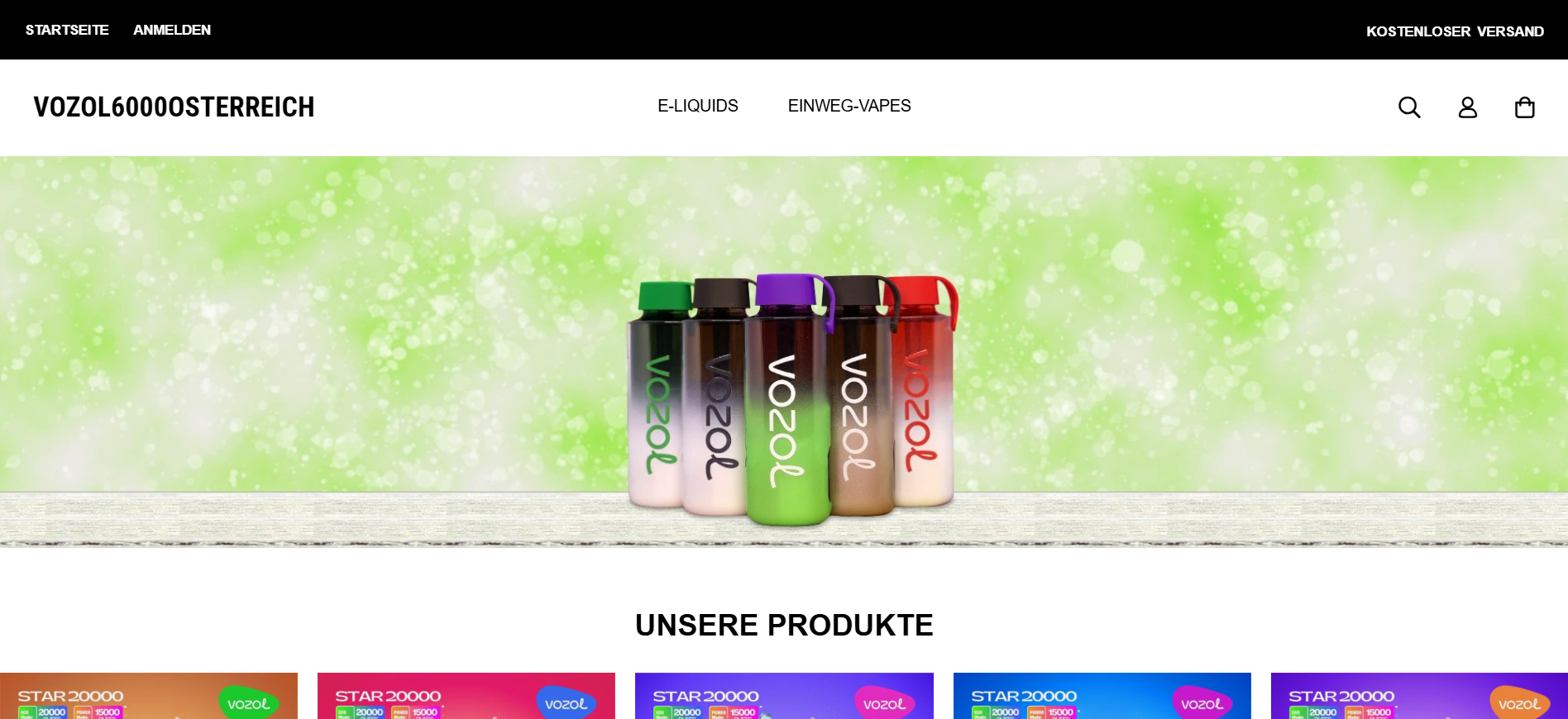Die Webseite „vozol60000osterreich“ bietet eine Auswahl an E-Liquids und Einweg-Vapes an. Auf der Hauptseite werden verschiedene Produkte angezeigt, darunter mehrere farbige Behälter, die jeweils mit dem Markennamen „Vozol“ gekennzeichnet sind. Die Produkte scheinen in unterschiedlichen Geschmacksrichtungen und Nikotinstärken erhältlich zu sein. Im Bereich „Unsere Produkte“ sind spezifische Produktlinien aufgelistet, darunter der „STAR 20000“. Diese Produktlinie umfasst verschiedene Varianten, die sich durch unterschiedliche Nikotinstärken und möglicherweise Geschmäcker unterscheiden. Es befindet sich auch ein Hinweis auf die Menge des enthaltenen E-Liquids, die in Milliliter angegeben ist. Zusätzlich werden die Eigenschaften der E-Liquids hervorgehoben, darunter Hinweise auf das mögliche Volumen und die Anzahl der Züge, die mit einem Einweg-Vape möglich sind. Die Webseite könnte Nutzern Informationen zu den verwendeten Inhaltsstoffen und der Funktionsweise der Produkte bereitstellen, jedoch sind genaue Details hierzu auf den angezeigten Screenshots nicht ersichtlich. Die Benutzeroberfläche der Webseite suggeriert, dass eine Registrierung oder Anmeldung erforderlich sein könnte, um Bestellungen aufzugeben oder weitere Informationen zu den Produkten zu erhalten. Außerdem wird ein kostenloser Versand angeboten, was möglicherweise ein Anreiz für potenzielle Käufer darstellt. Die Webseite zielt offensichtlich auf Nutzer ab, die an E-Zigaretten oder Vaping interessiert sind, und bietet eine Plattform, um diese Produkte zu kaufen. Es fehlen jedoch Hinweise auf rechtliche Informationen oder Zertifizierungen, die auf die Qualität und Sicherheit der Produkte hinweisen. Insgesamt konzentriert sich die Webseite hauptsächlich auf den Verkauf von Vapes und E-Liquids mit einer klaren Struktur für die Produktkategorien und Informationen zu den jeweiligen Angeboten, während wichtige rechtliche Bedingungen oder Zusatzinformationen nicht ersichtlich sind.