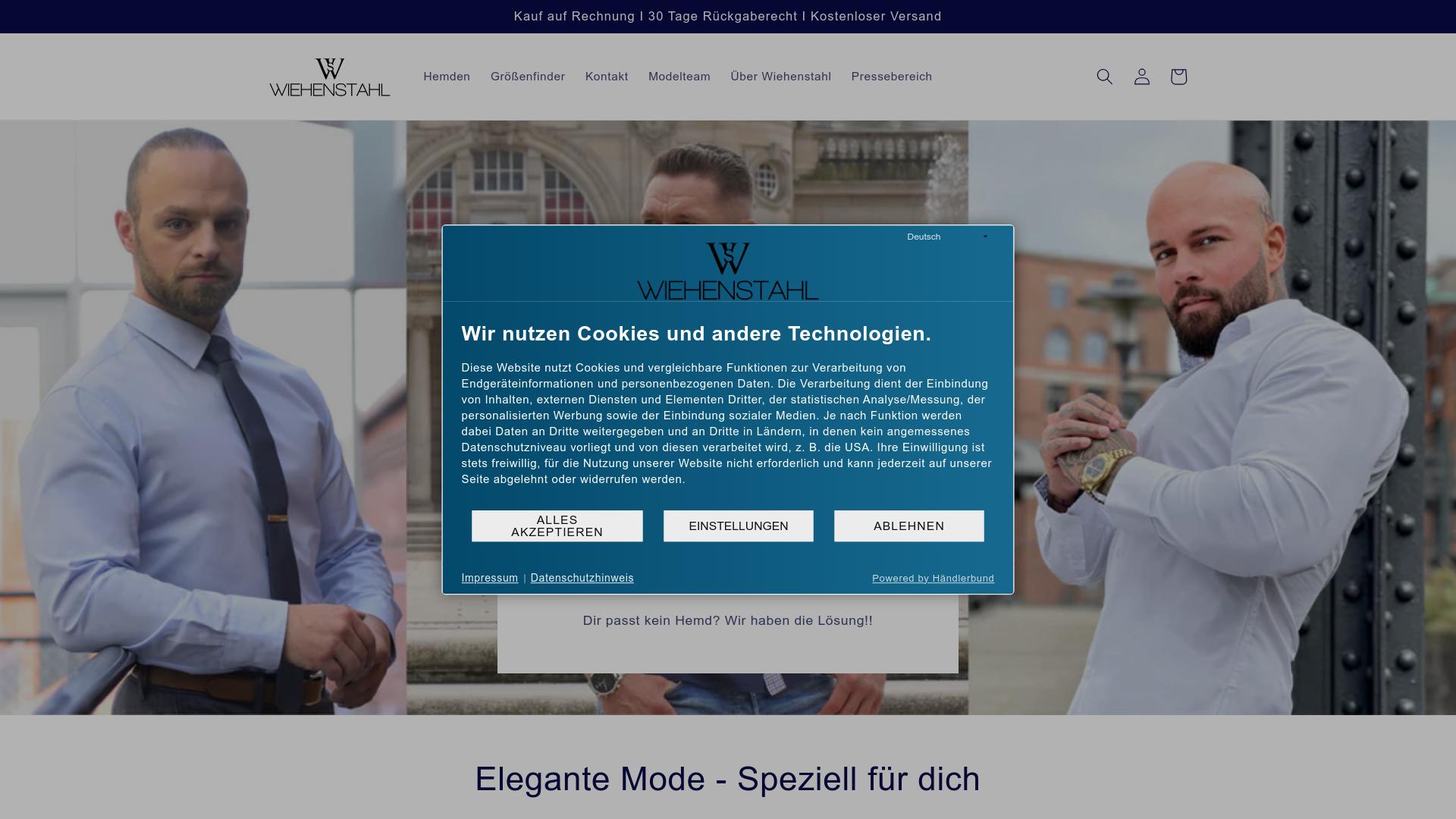 Die Webseite „Wiehenstahl“ bietet eine Auswahl an modischen Herrenhemden an. Die Hauptzielgruppe sind Männer, die auf der Suche nach eleganter Kleidung sind. Auf der Startseite wird eine Vielzahl von Hemden präsentiert, die in unterschiedlichen Designs und Farben erhältlich sind. Die Hemden scheinen auf eine Vielzahl von Anlässen zugeschnitten zu sein, einschließlich formeller und legerer Events. Zusätzlich zur Produktpräsentation enthält die Seite Informationen zu verschiedenen Größen und einem Größenfinder, der den Nutzern helfen soll, die passende Hemdgröße zu ermitteln. Diese Funktion könnte sich als nützlich erweisen, um sicherzustellen, dass die Nutzer ein Hemd wählen, das gut passt. Die Webseite weist darauf hin, dass Käufe auf Rechnung möglich sind, was für einige Kunden eine praktische Zahlungsoption darstellen könnte. Ein weiteres Merkmal ist die Rückgaberegelung, die eine Frist von 30 Tagen für Rückgaben angibt. Diese Angabe könnte potenziellen Käufern zusätzliche Flexibilität bieten. Zusätzlich wird auf der Webseite ein kostenloser Versand für Bestellungen erwähnt, was als Anreiz für Nutzer dienen kann, die bei Online-Käufen auf Versandkosten achten. Ein Abschnitt über das Unternehmen selbst gibt einen Überblick über die Marke und ihren Hintergrund, jedoch sind keine detaillierten Informationen zu den Herstellungsbedingungen oder Herkunft der Produkte zu finden. Für Nutzer, die an weiteren Inhalten interessiert sind, gibt es offenbar auch einen Pressebereich sowie Informationen zum Modellteam der Marke. Diese Abschnitte könnten zusätzliche Einblicke in die Designphilosophie und das Engagement der Marke für modische Trends bieten. Ein Hinweis auf den Einsatz von Cookies und anderen Technologien zur Nutzerverfolgung ist ebenfalls vorhanden, was darauf hinweist, dass die Webseite die Interaktionen der Besucher zur Verbesserung ihrer Dienstleistungen auswertet. Diese Informationen sind für Nutzer von Bedeutung, die Wert auf den Datenschutz legen. Insgesamt zu bietet die Webseite „Wiehenstahl“ eine zentrale Plattform für den Erwerb von Herrenhemden, ergänzt durch verschiedene unterstützende Informationen, um das Einkaufserlebnis zu erleichtern.