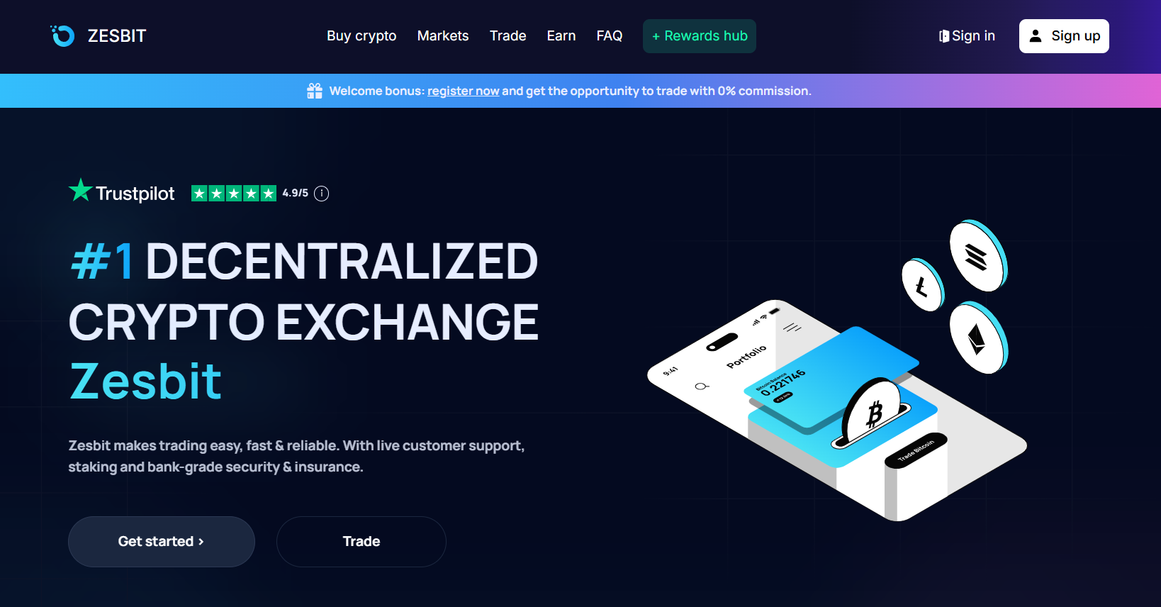 Die Webseite „Zesbit“ präsentiert sich als eine Plattform für den Handel mit Kryptowährungen, die sich als dezentralisierte Börse positioniert. Sie bietet Nutzern die Möglichkeit, verschiedene digitale Währungen zu kaufen und zu handeln. Als Schwerpunkt wird die Benutzerfreundlichkeit hervorgehoben, wobei angegeben wird, dass die Handelsprozesse einfach und schnell erfolgen können. Auf der Webseite wird neben dem Handel auch auf zusätzliche Dienstleistungen hingewiesen. Dazu gehören Optionen wie das Staking von Kryptowährungen, wodurch Nutzer möglicherweise die Möglichkeit haben, an der Generierung von Erträgen aus ihren Anlagen teilzunehmen. Ein weiteres Merkmal, das genannte wird, ist die angestrebte Sicherheit der Plattform, die durch eine Versicherung sowie Sicherheitsmaßnahmen auf Bank-Niveau unterstützt werden soll. Zusätzlich wird ein Kundenservice angeboten, der laut Angaben in Echtzeit verfügbar ist, um den Nutzern bei eventuellen Fragen oder Problemen zur Seite zu stehen. Die Plattform bietet verschiedene Funktionen zu Handelsmärkten und Möglichkeiten, Informationen zu erhalten. In den Kundenbewertungen, die auf der Webseite gezeigt werden, wird eine hohe Zufriedenheit mit der Plattform angedeutet; eine spezifische Punktzahl wird in Form einer 4,9 von 5 möglichen Sternen auf Trustpilot dargestellt. Diese Bewertungen könnten jedoch variieren und sind daher nicht unbedingt repräsentativ für die Erfahrungen aller Nutzer. Die Webseite enthält auch das Angebot eines „Willkommensbonus“, was darauf hindeutet, dass Nutzer, die sich neu anmelden, zusätzliche Anreize erhalten könnten, um mit dem Handel zu beginnen. Es wird zudem ein Punkt zur Registrierung angeboten, der darauf abzielt, potenzielle Nutzer zur Anmeldung und zum Beginn ihrer Handelsaktivitäten zu bewegen. Zusammenfassend lässt sich sagen, dass die Webseite „Zesbit“ darauf abzielt, eine umfassende Handelsumgebung für Kryptowährungen bereitzustellen, die sowohl Handel als auch zusätzliche Dienstleistungen wie Staking und Kundenunterstützung umfasst.